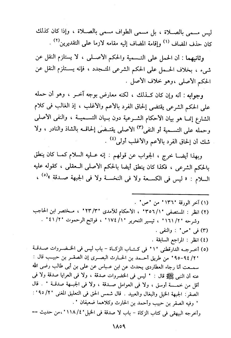 وجوابه: أنه إن كان كذلك، لكنه معارض بوجه آخر، وهو أن حمله على الحكم الشرعي يقتضي إلحاق الفرد بالأعم والأغلب، إذ الغالب في كلام الشارع إنما هو بيان الأحكام الشرعية دون بيان التسمية، والنفي الأصلي وحمله على التسمية أو النفي الأصلي يقتضي إلحاقه بالشاذ والنادر، ولا شك أن إلحاق الفرد بالأعم والأغلب أولى.