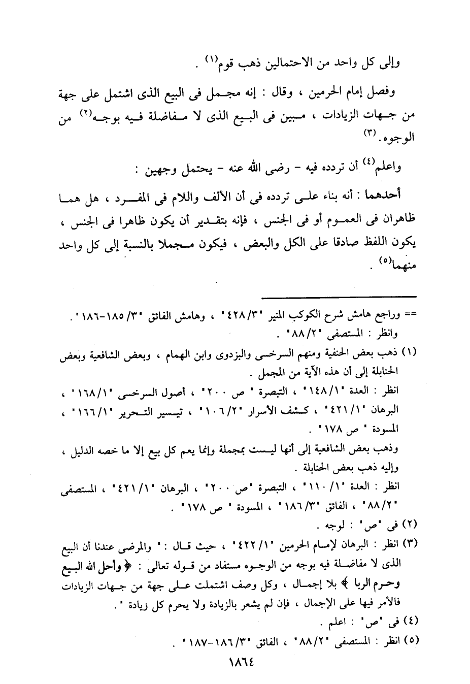 وفصل إمام الحرمين، وقال: إنه مجمل في البيع الذي اشتمل على جهة من جهات الزيادات، مبين في البيع الذي لا مفاضلة فيه بوجه من الوجوه.