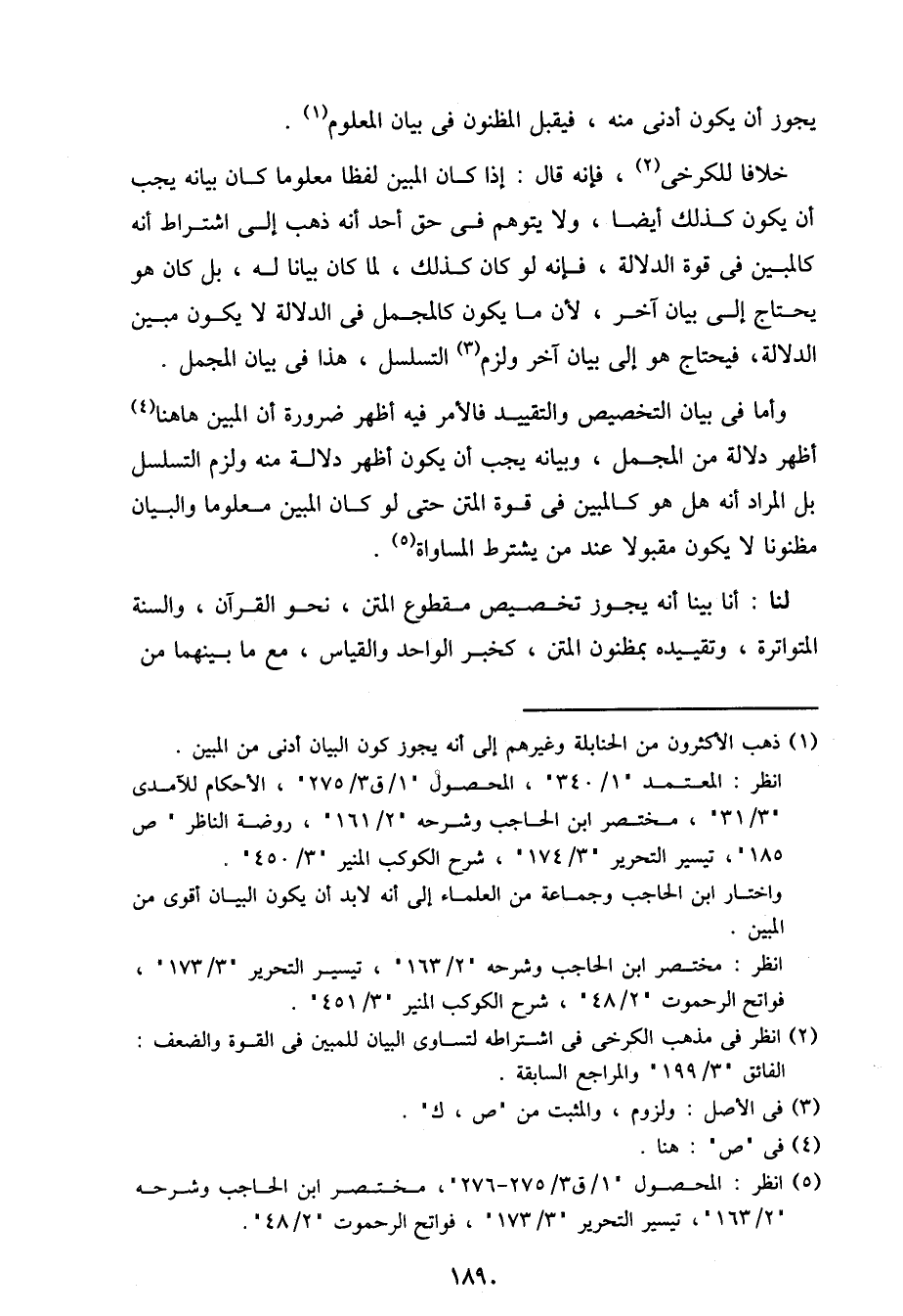 خلافا للكرخي، فإنه قال: إذا كان المبين لفظا معلوما كان بيانه يجب أن يكون كذلك أيضا، ولا يتوهم في حق أحد أنه ذهب إلى اشتراط أنه كالمبين في قوة الدلالة، فإنه لو كان كذلك، لما كان بيانا له، بل كان هو يحتاج إلى بيان آخر، لأن ما يكون كالمجمل في الدلالة لا يكون مبين الدلالة، فيحتاج هو إلى بيان آخر ولزم التسلسل، هذا في بيان المجمل.