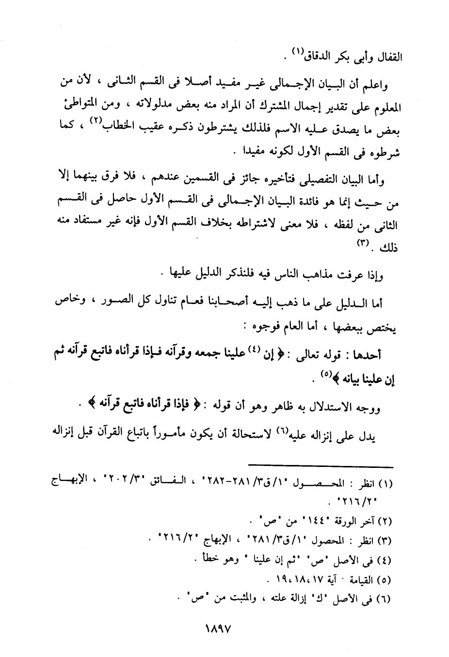 أحدها: قوله تعالى:} إن علينا جمعه وقرآنه فإذا قرأناه فاتبع قرآنه ثم إن علينا بيانه {.