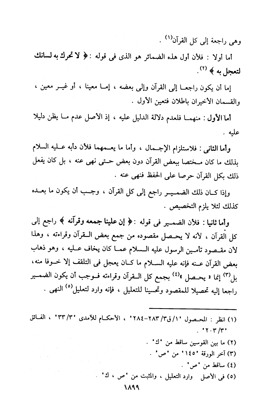 أما أولا: فلأن أول هذه الضمائر هو الذي في قوله:} لا تحرك به لسانك لتعجل به {.