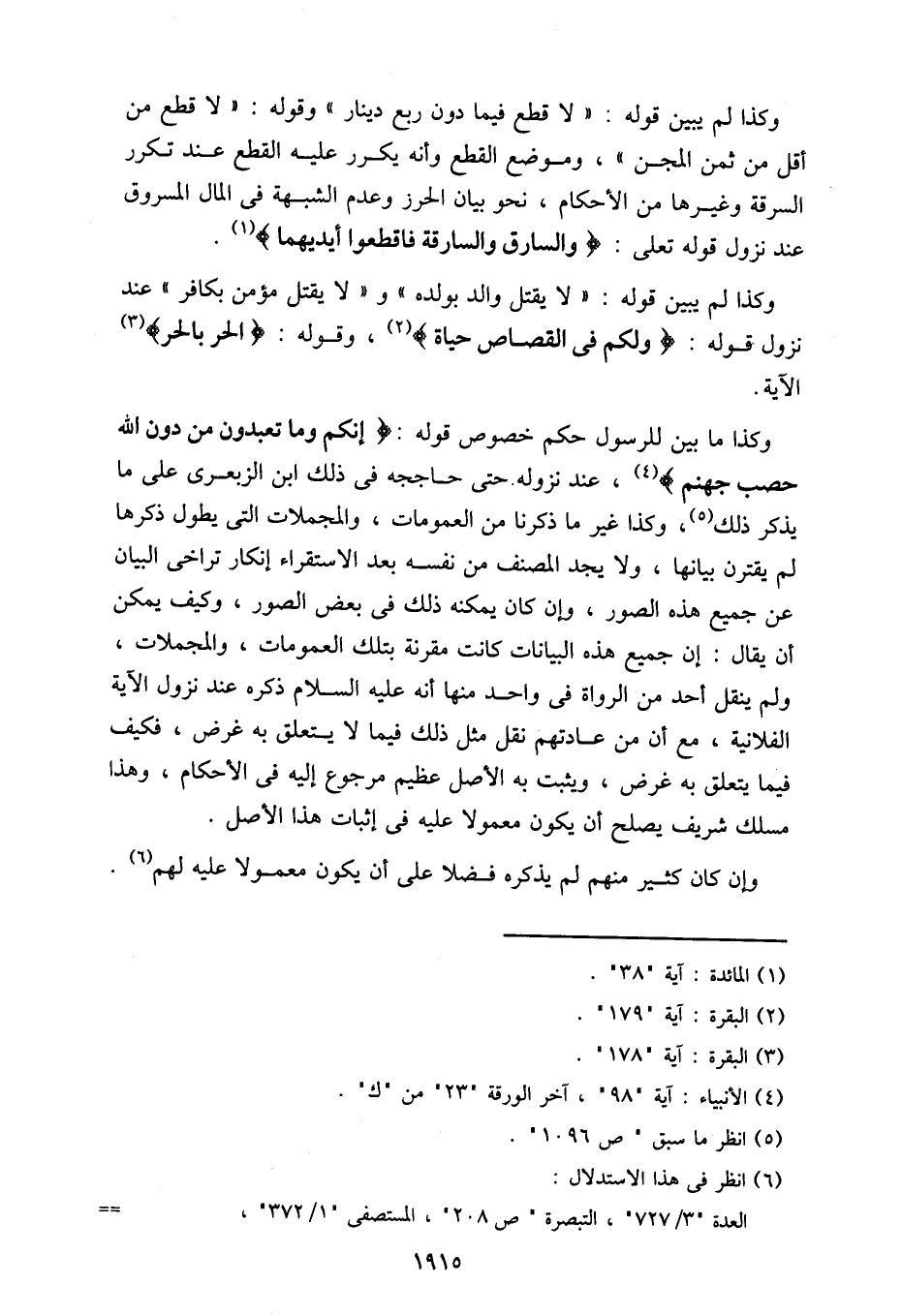 وكذا ما بين للرسول حكم خصوص قوله:} إنكم وما تعبدون من دون الله حصب جهنم {، عند نزوله حتى حاججه في ذلك ابن الزبعري على ما يذكر ذلك، وكذا غير ما ذكرنا من العمومات، والمجملات التي يطول ذكرها لم يقترن بيانها، ولا يجد المصنف من نفسه بعد الاستقراء إنكار تراخي البيان عن جميع هذه الصور، وإن كان يمكنه ذلك في بعض الصور، وكيف يمكن أن يقال: إن جميع هذه البيانات كانت مقرنة بتلك العمومات، والمجملات، ولم ينقل أحد من الرواة في واحد منها أنه عليه السلام ذكره عند نزول الآية الفلانية، مع أن من عادتهم نقل مثل ذلك فيما لا يتعلق به غرض، فكيف فيما يتعلق به غرض، ويثبت به الأصل عظيم مرجوع إليه في الأحكام، وهذا مسلك شريف يصلح أن يكون معمولا عليه في إثبات هذا الأصل.
