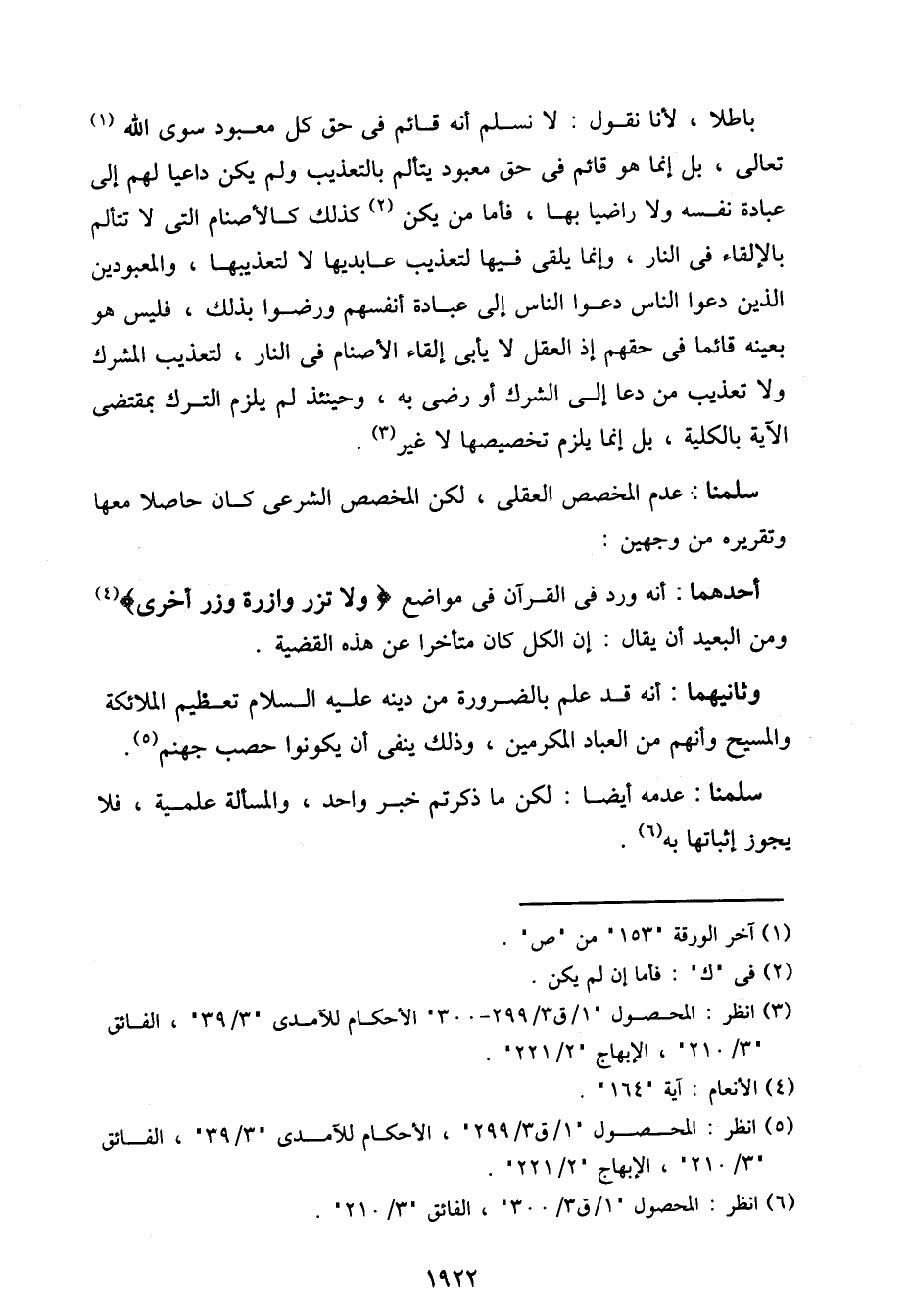 باطلا، لأنا نقول: لا نسلم أنه قائم في حق كل معبود سوى الله تعالى، بل إنما هو قائم في حق معبود يتألم بالتعذيب ولم يكن داعيا لهم إلى عبادة نفسه ولا راضيا بها، فاما من يكن كذلك كالأصنام التي لا تتألم بالإلقاء في النار، وإنما يلقى فيها لتعذيب عابديها لا لتعذيبها، والمعبودين الذين دعوا الناس دعوا الناس إلى عبادة أنفسهم ورضوا بذلك، فليس هو بعينه قائما في حقهم إذ العقل لا يأبى إلقاء الأصنام في النار، لتعذيب المشرك ولا تعذيب من دعا إلى الشرك أو رضي به، وحينئذ لم يلزم الترك بمقتضى الآية بالكلية، بل إنما يلزم تخصيصها لا غير.