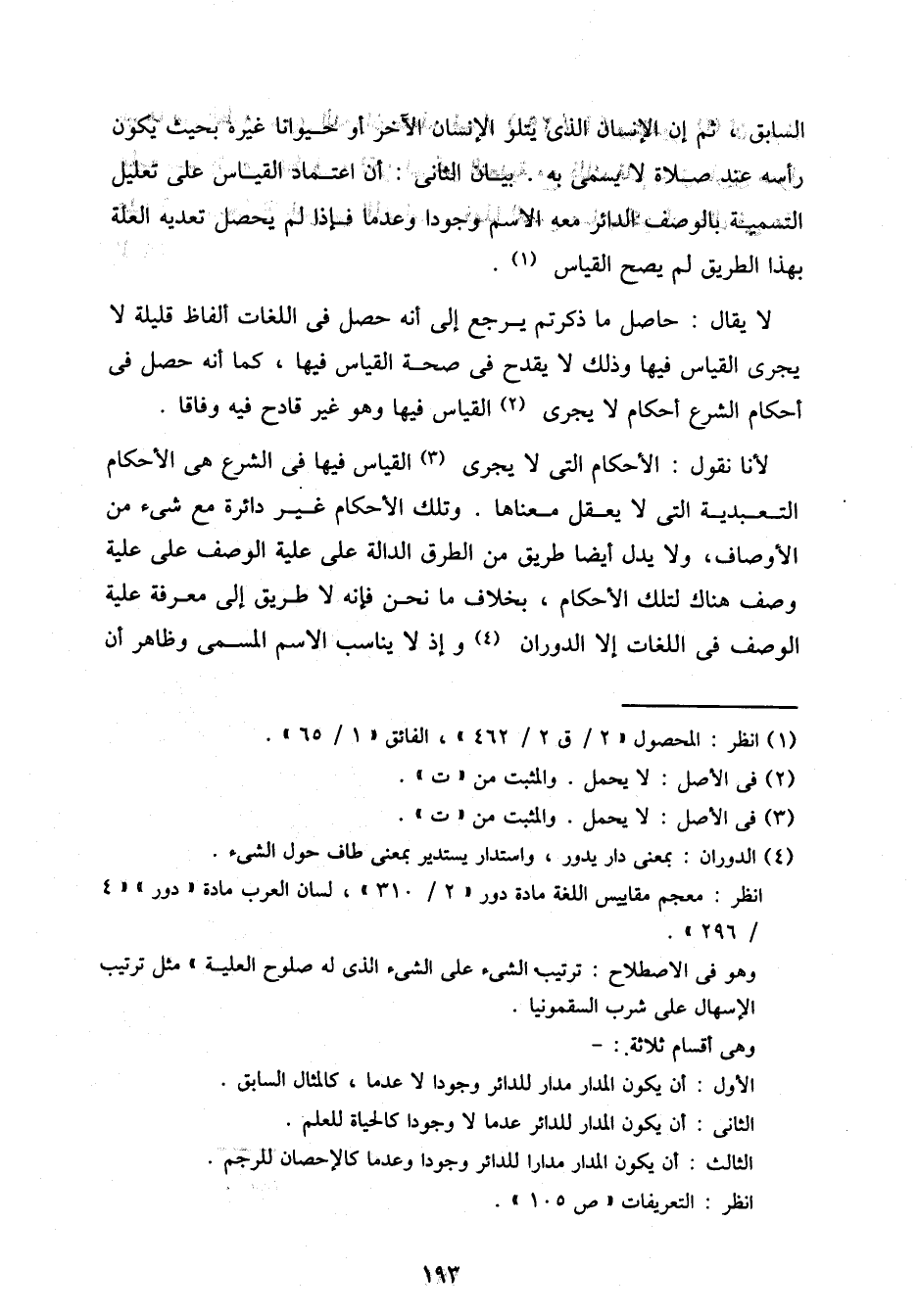 لأنا نقول: الأحكام التي لا يجرى القياس فيها في الشرع هي الأحكام التعبدية التي لا يعقل معناها. وتلك الأحكام غير دائرة مع شيء من الأوصاف، ولا يدل أيضا طريق من الطرق الدالة على علية الوصف على علية وصف هناك لتلك الأحكام، بخلاف ما نحن فإنه لا طريق إلى معرفة علية الوصف في اللغات إلا الدوران وإذ لا يناسب الاسم المسمى وظاهر أن