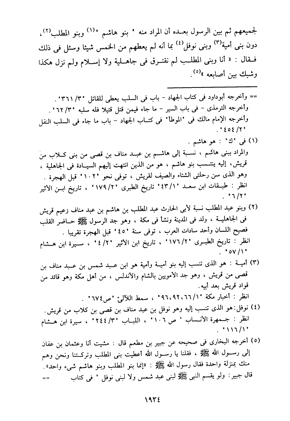 لجميعهم ثم بين الرسول بعده أن المراد منه "بنو هاشم" وبنو المطلب، دون بني أمية وبني نوفل بما أنه لم يعطهم من الخمس شيئا وسئل في ذلك فقال: "أنا وبني المطلب لم نفترق في جاهلية ولا إسلام ولم نزل هكذا وشبك بين أصابعه".