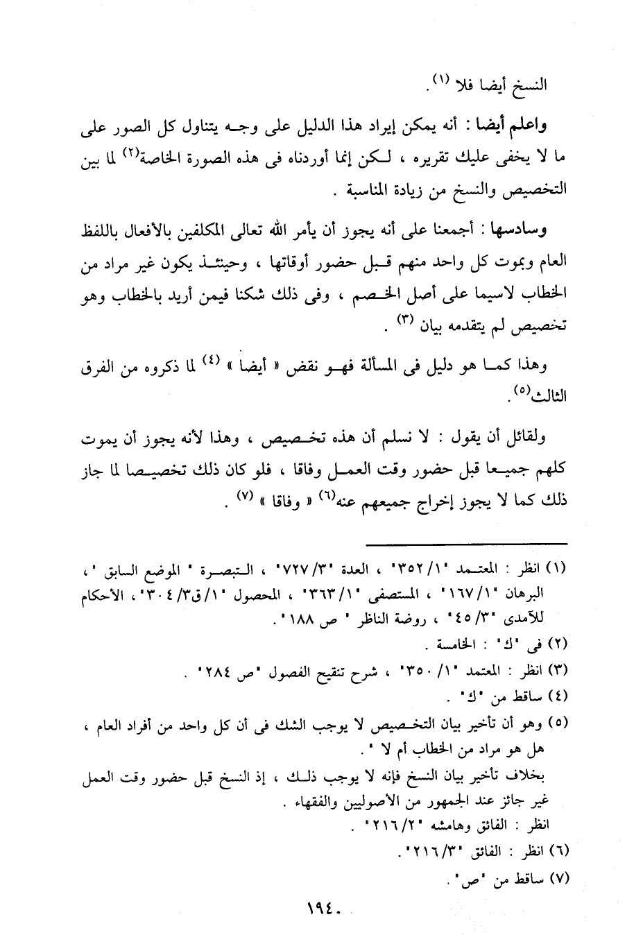 واعلم أيضا: أنه يمكن إيراد هذا الدليل على وجه يتناول كل الصور على ما لا يخفى عليك تقريره، لكن إنما أوردناه في هذه الصورة الخاصة لما بين التخصيص والنسخ من زيادة المناسبة.
