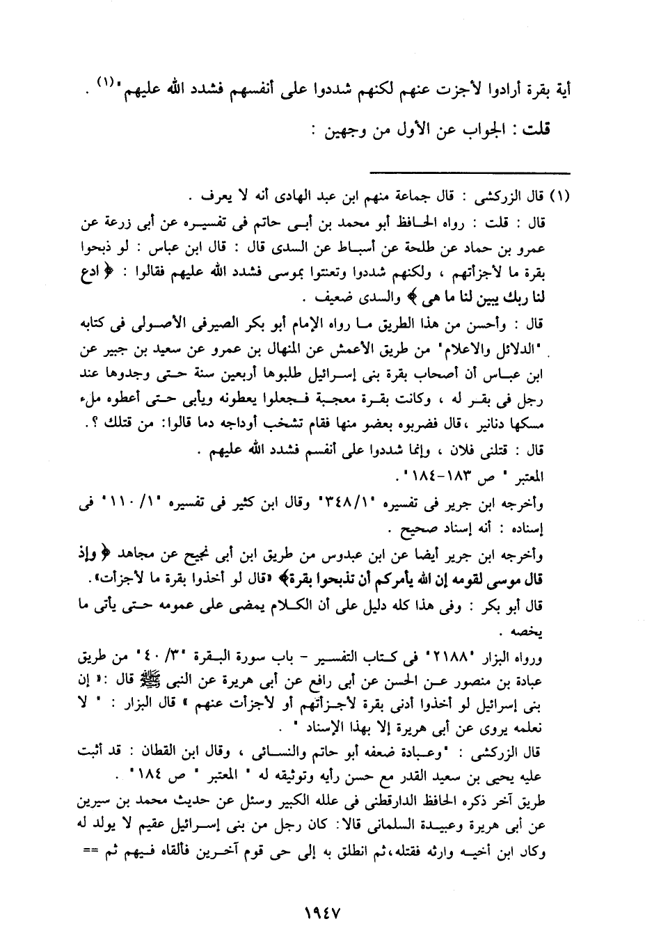 أية بقرة أرادوا لأجزت عنهم لكنهم شددوا على أنفسهم فشدد الله عليهم".