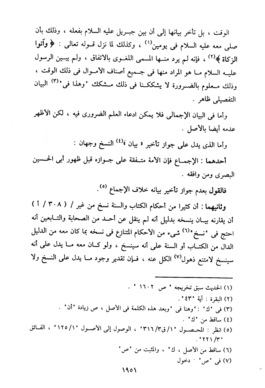 الوقت، بل تأخر بيانها إلى أن بين جبريل عليه السلام بفعله، وذلك أن صلى معه عليه السلام في يومين، وكذلك لما نزل قوله تعالى:} وآتوا الزكاة {، فإنه لم يرد منها المسمى اللغوي بالاتفاق، ولم يبين الرسول عليه السلام ما هو المراد منها في جميع أصناف الأموال في ذلك الوقت، وذلك معلوم بالضرورة لا يشككنا في ذلك مشكك "وهذا في" البيان التفصيلي ظاهر.