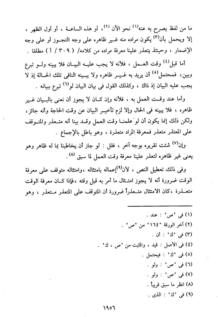 وفي ذلك تعطيل النص، لأن إعماله بامتثاله، وامتثاله متوقف على معرفة الوقت ضرورة أنه لا يجوز امتثال ما أمر به قبل وقته، فإذا كان معرفة الوقت متعذرة، كان الامتثال متعذرا ضرورة أن المتوقف على المتعذر متعذر، وهو