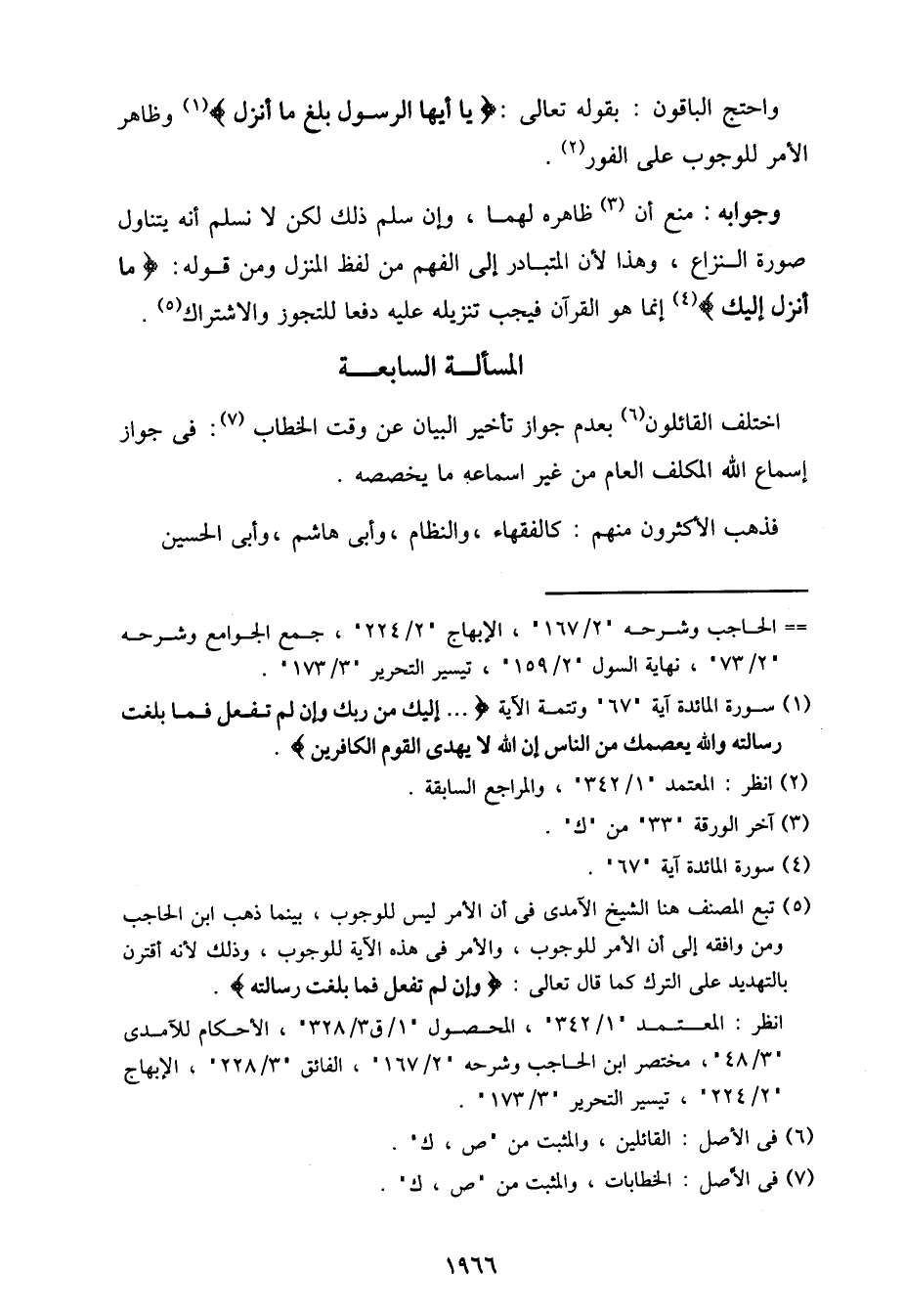 واحتج الباقون: بقوله تعالى: {يا أيها الرسول بلغ ما أنزل {وظاهر الأمر للوجوب على الفور.