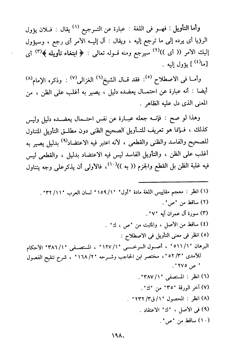 وأما في الاصطلاح: فقد قال الشيخ الغزالي: وذكره الإمام أيضا: أنه عبارة عن احتمال يعضده دليل، يصير به أغلب على الظن، من المعنى الذي دل عليه الظاهر.