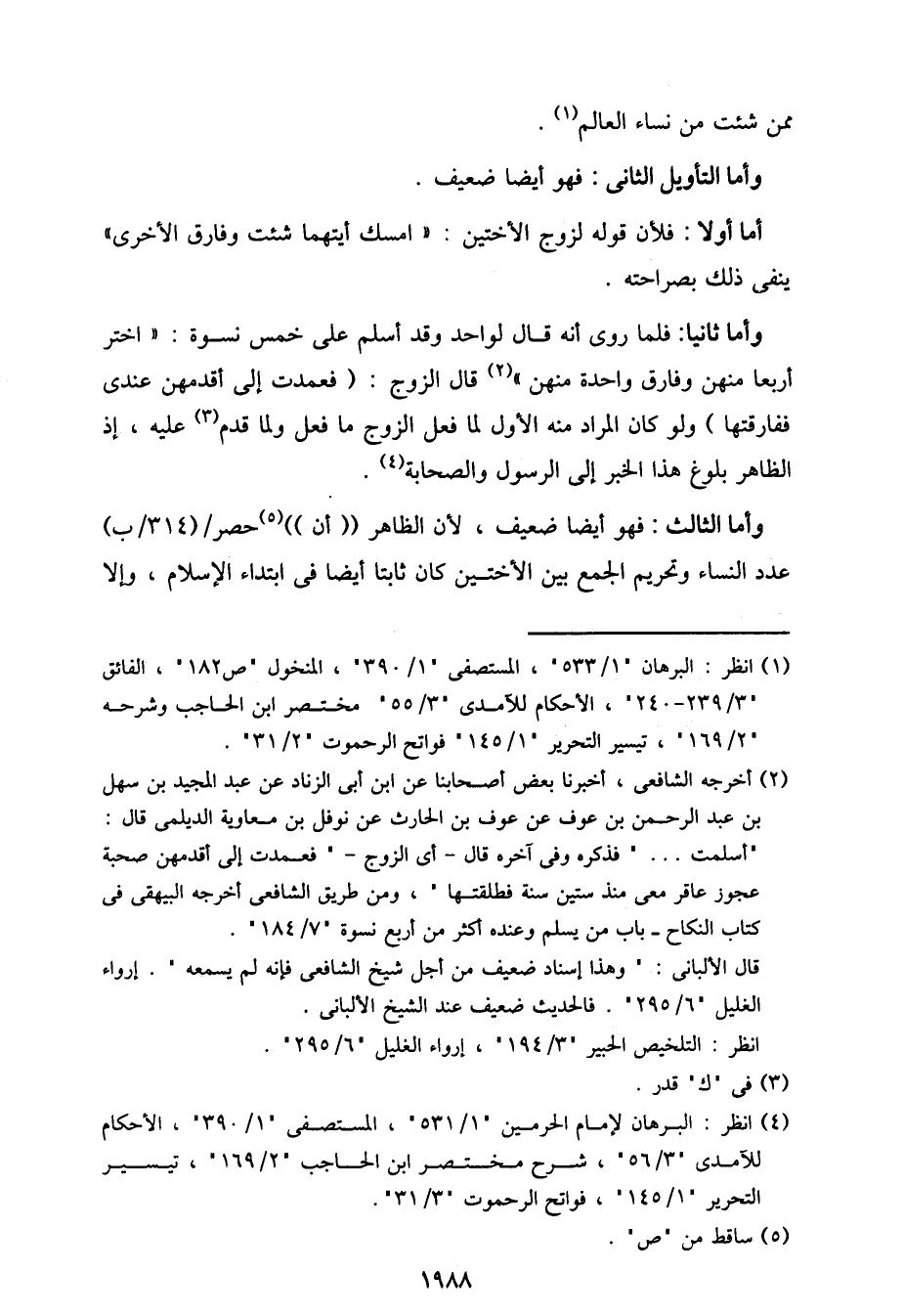 وأما الثالث: فهو أيضا ضعيف، لأن الظاهر "أن" حصر / (314/ب) عدد النساء وتحريم الجمع بين الأختين كان ثابتا أيضا في ابتداء الإسلام، وإلا