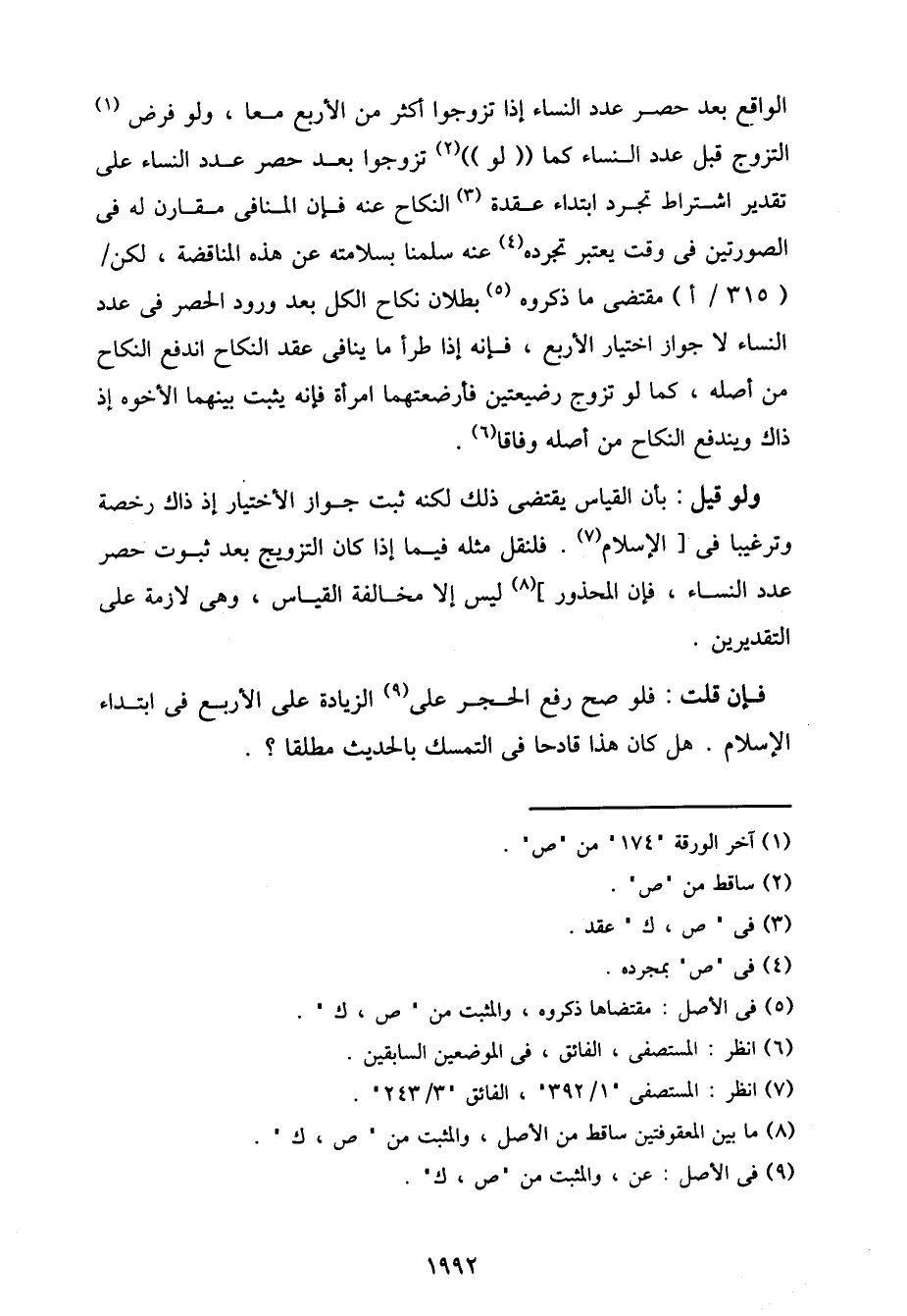 فإن قلت: فلو صح رفع الحجر على الزيادة على الأربع في ابتداء الإسلام. هل كان هذا قادحا في التمسك بالحديث مطلقاً؟.