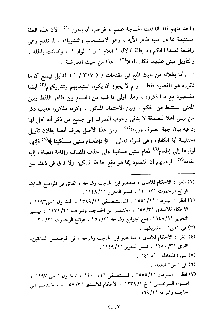 وأما بطلانه من حيث المنع في مقدمات / (317/أ) الدليل فيمنع أن ما ذكروه هو المقصود فقط، ولم لا يجوز أن يكون استيعابهم وتشريكهم أيضا مقصود مع ما ذكروه، وهذا أولى لما فيه من الجمع بين ظاهر اللفظ وبين المعنى المستنبط من الحكم، وبين الاحتمال المذكور، وكونه مذكورا عقيب ذكر من ليس أهلا للصدقة لا ينافي وجوب الصرف إلى جميع من ذكر أنه أهل لها إذ فيه بيان جهة الصرف وزيادة. ومن هذا الأصل يعرف أيضا بطلان تأويل الحنفية آية الكفارة وهي قوله تعالى:} فإطعام ستين مسكينا {فإنهم أولوها إلى إطعام طعام ستين مسكينا على حذف المضاف وإقامة المضاف إليه مقامه. لزعمهم أن المقصود إنما هو دفع حاجة المسكين ولا فرق في ذلك بين