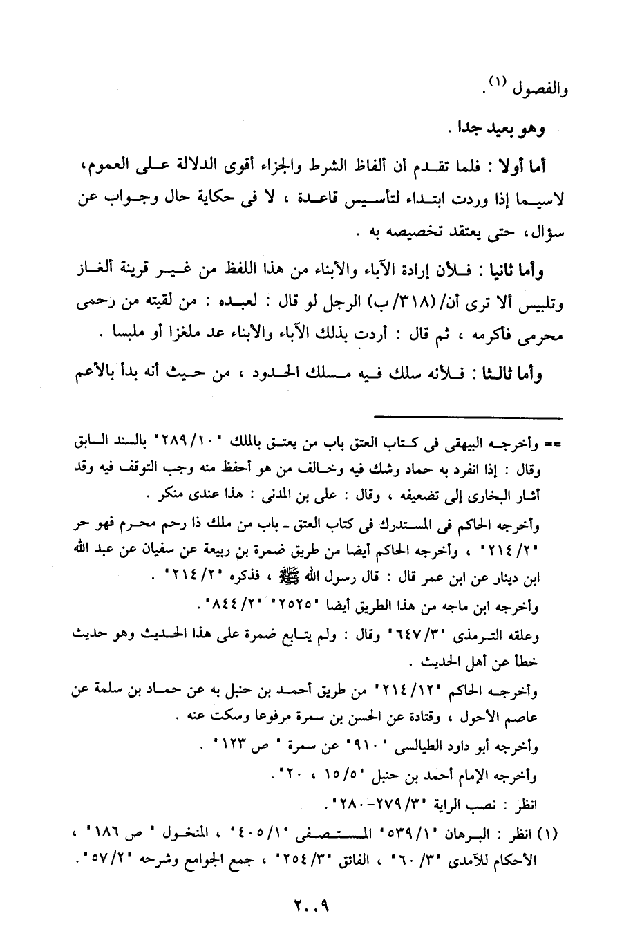أما أولا: فلما تقدم أن ألفاظ الشرط والجزاء أقوى الدلالة على العموم، لا سيما إذا وردت ابتداء لتأسيس قاعدة، لا في حكاية حال وجواب عن سؤال، حتى يعتقد تخصيصه به.