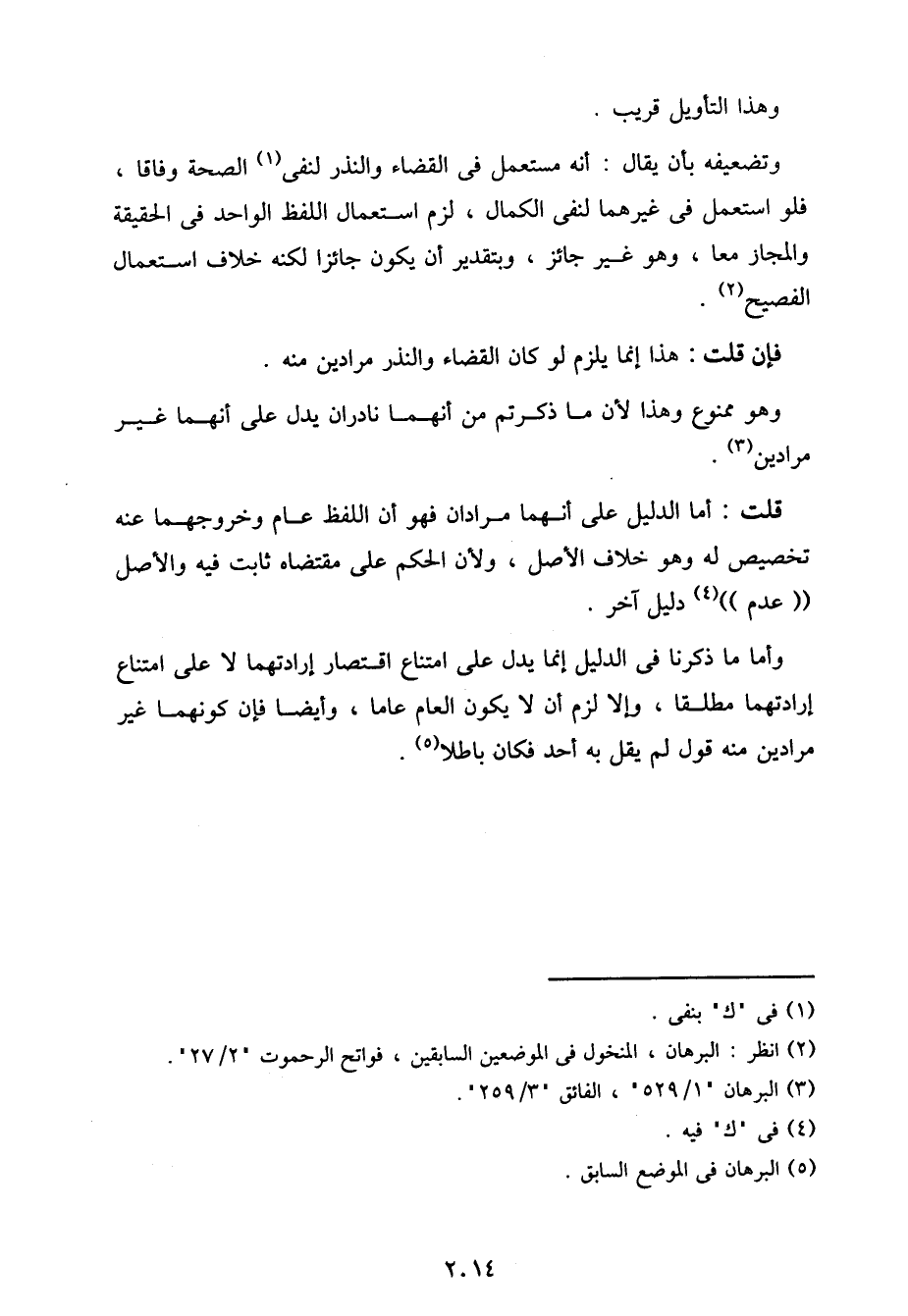 وتضعيفه بأن يقال: انه مستعمل في القضاء والنذر لنفي الصحة وفاقا، فلو استعمل في غيرهما لنفي الكمال، لزم استعمال اللفظ الواحد في الحقيقة والمجاز معا، وهو غير جائز، وبتقدير أن يكون جائزا لكنه خلاف استعمال الفصيح.