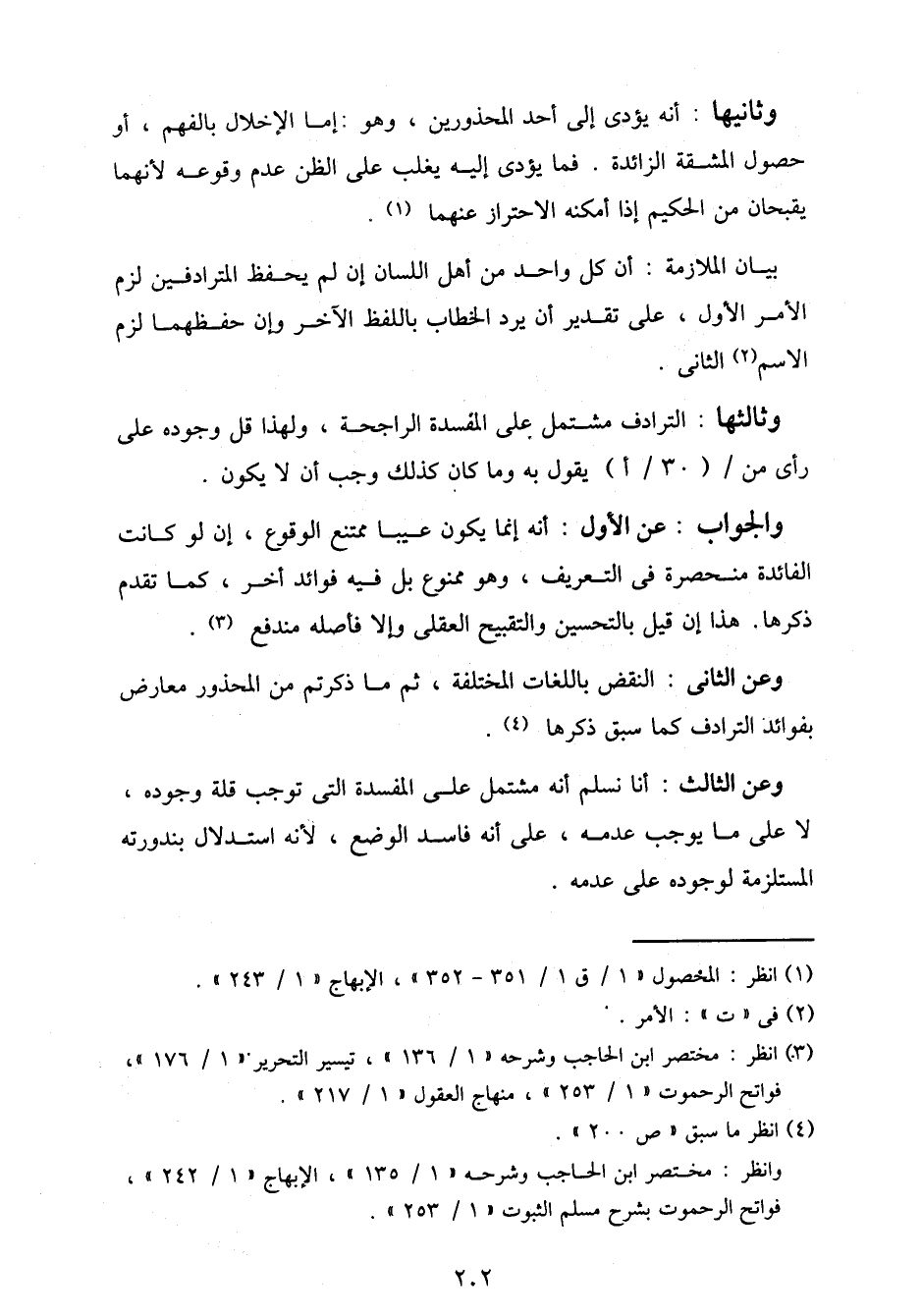 وعن الثاني: النقض باللغات المختلفة، ثم ما ذكرتم من المحذور معارض بفوائد الترادف كما سبق ذكرها.