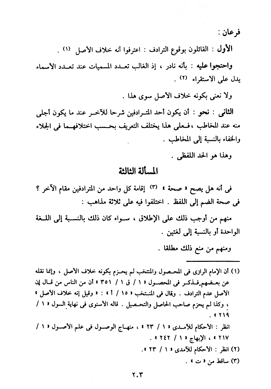 المسألة الثالثة