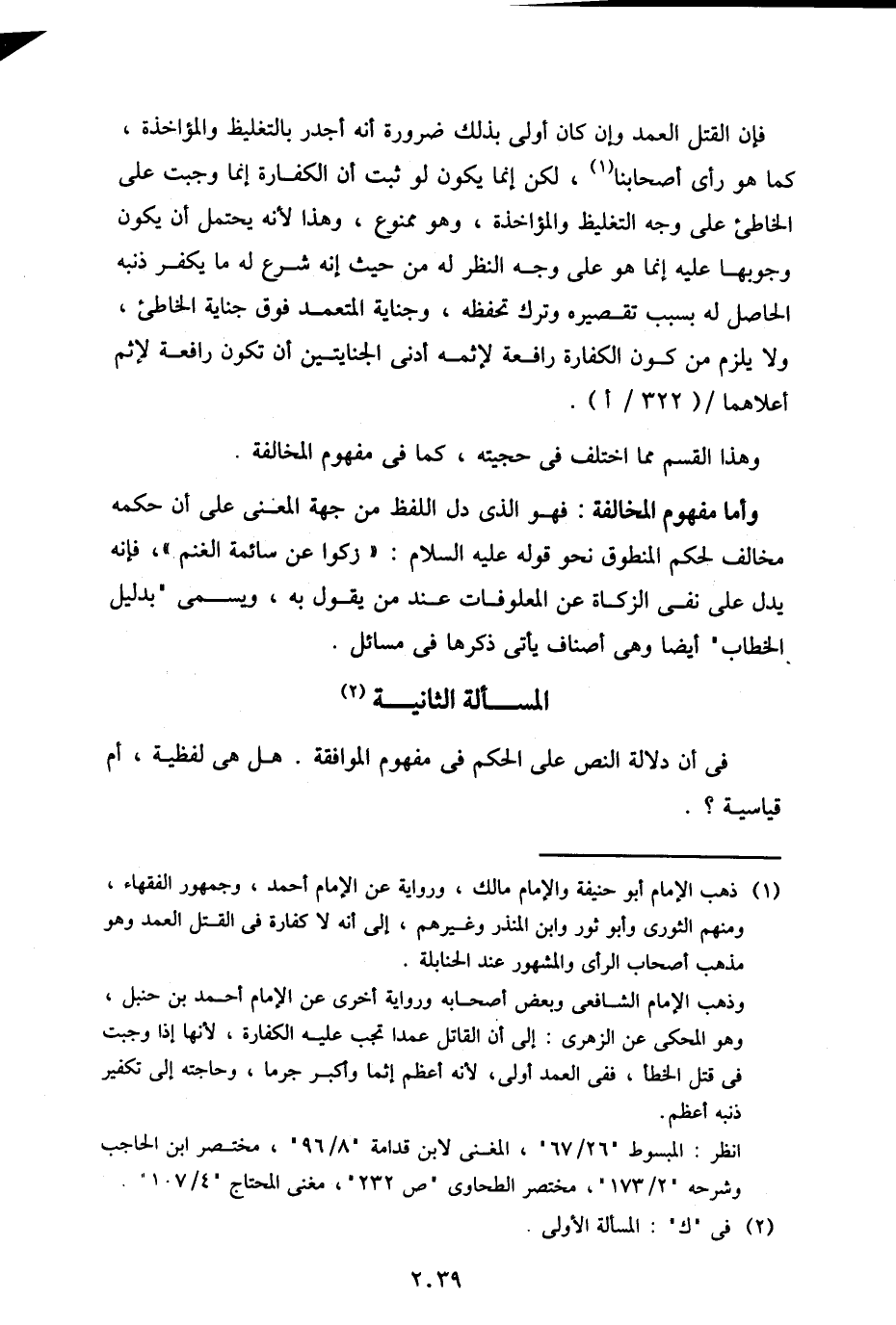 في أن دلالة النص على الحكم في مفهوم الموافقة. هل هي لفظية، أم قياسية؟.