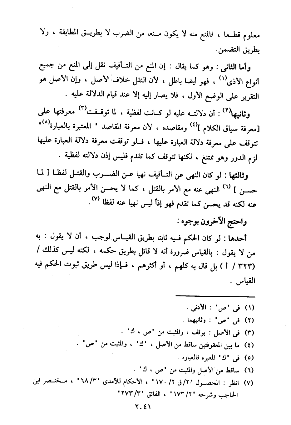 وأما الثاني: وهو كما يقال: إن المنع من التأفيف نقل إلى المنع من جميع أنواع الأذى، فهو أيضا باطل، لأن النقل خلاف الأصل، وإن الأصل هو التقرير على الوضع الأول، فلا يصار إليه إلا عند قيام الدلالة عليه.
