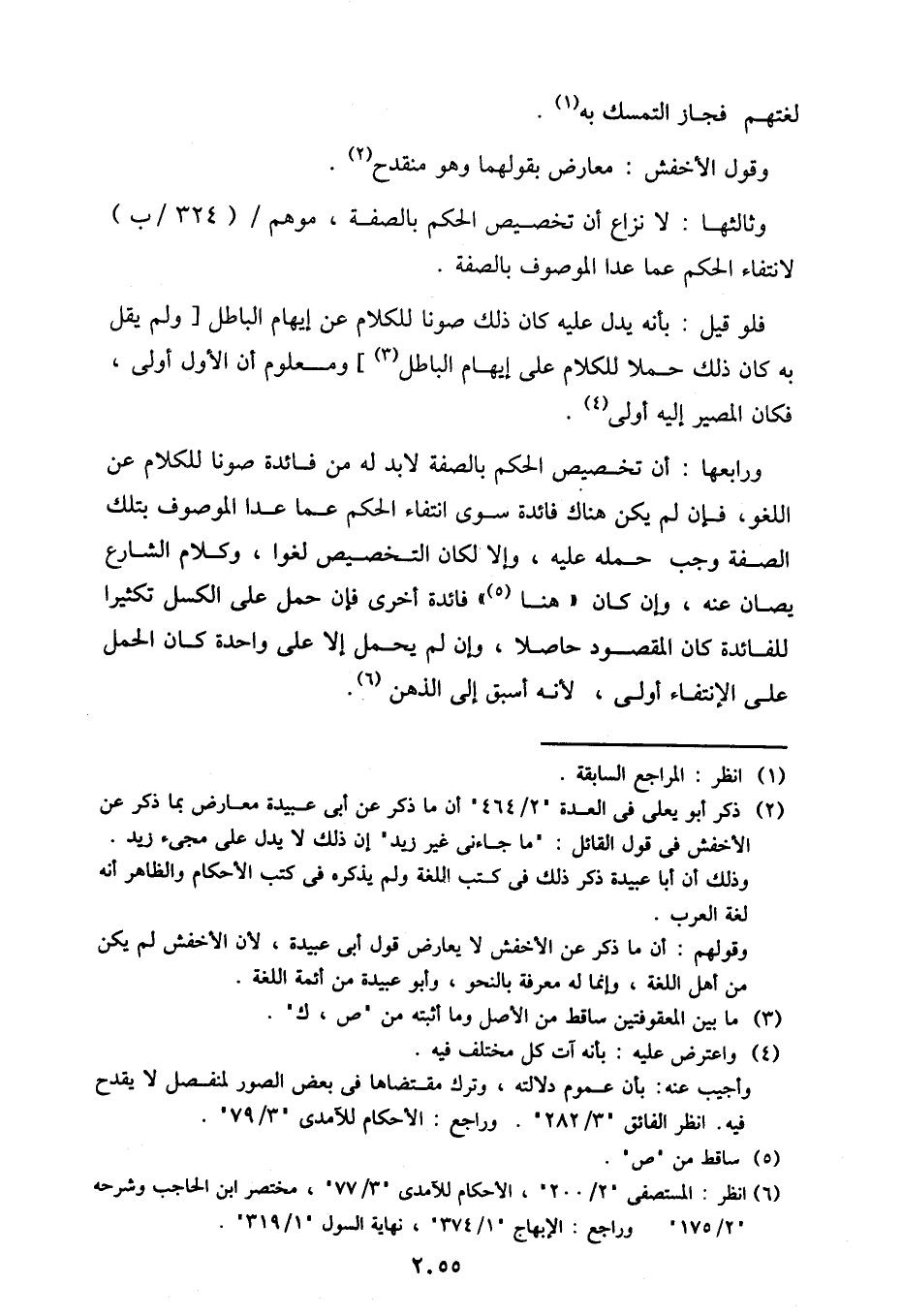 ورابعها: أن تخصيص الحكم بالصفة لابد له من فائدة صونا للكلام عن اللغو، فإن لم يكن هناك فائدة سوى انتفاء الحكم عما عدا الموصوف بتلك الصفة وجب حمله عليه، وإلا لكان التخصيص لغوا، وكلام الشارع يصان عنه، وإن كان "هنا" فائدة أخرى فإن حمل على الكسل تكثيرا للفائدة كان المقصود حاصلا، وإن لم يحمل إلا على واحدة كان الحمل على الانتفاء أولى، لأنه أسبق إلى الذهن.