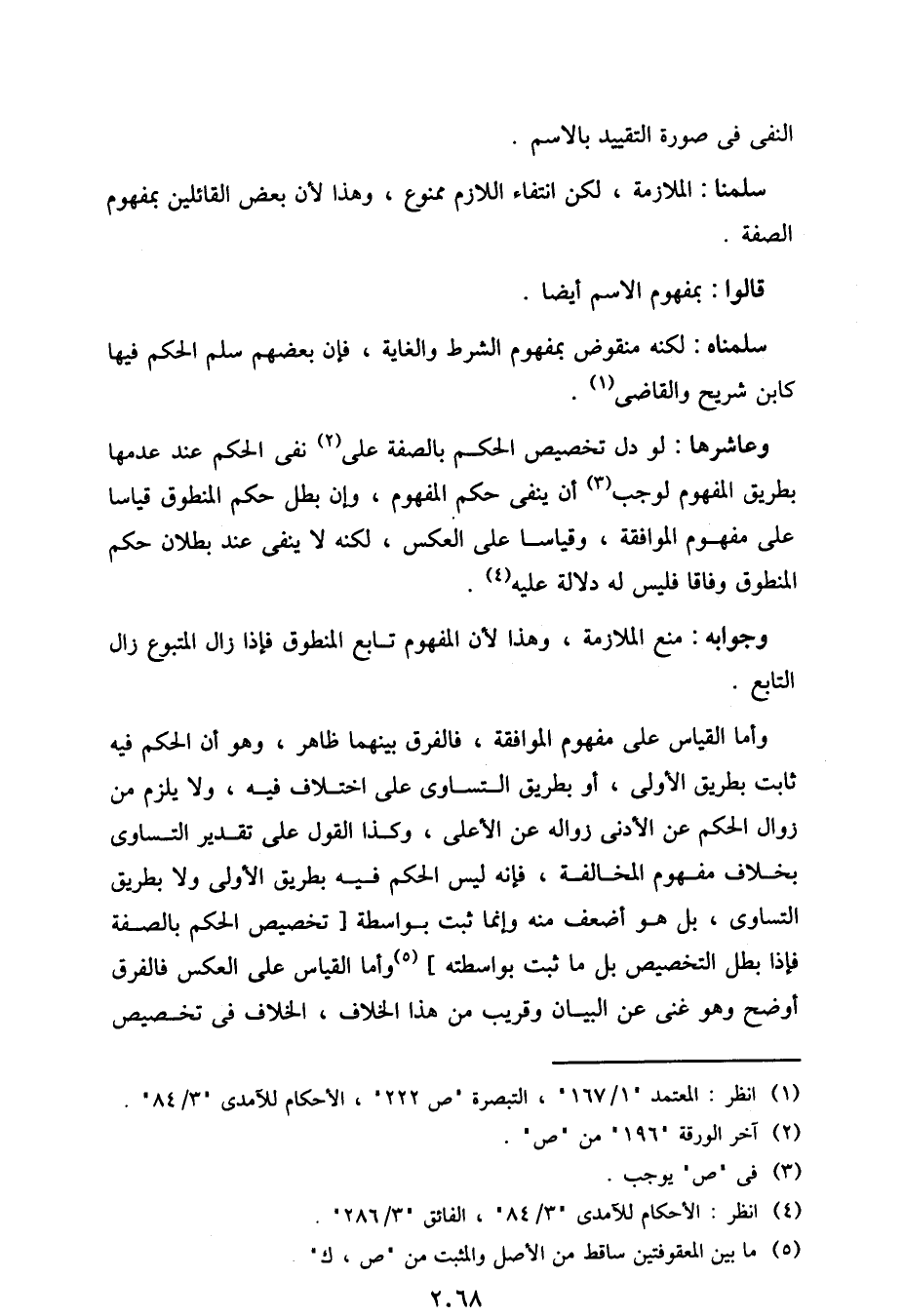 وعاشرها: لو دل تخصيص الحكم بالصفة على نفي الحكم عند عدمها بطريق المفهوم لوجب أن ينفى حكم المفهوم، وإن بطل حكم المنطوق قياسًا على مفهوم الموافقة، وقياسًا على العكس، لكنه لا ينفى عند بطلان حكم المنطوق وفاقًا فليس له دلالة عليه.