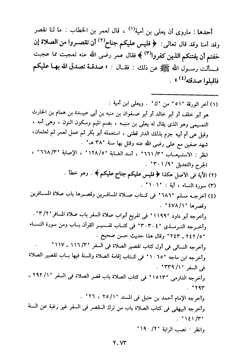 أحدها: ما روي أن يعلى بن أمية، قال لعمر بن الخطاب، ما لنا نقصر وقد أمنا وقد قال تعالى: {فليس عليكم جناح أن تقصروا من الصلاة إن خفتم أن يفتنكم الذين كفروا} فقال عمر رضي الله عنه تعجبت مما عجبت فسألت رسول الله صلى الله عليه وسلم عن ذلك: فقال: "صدقة تصدق الله بها عليكم فاقبلوا صدقته".