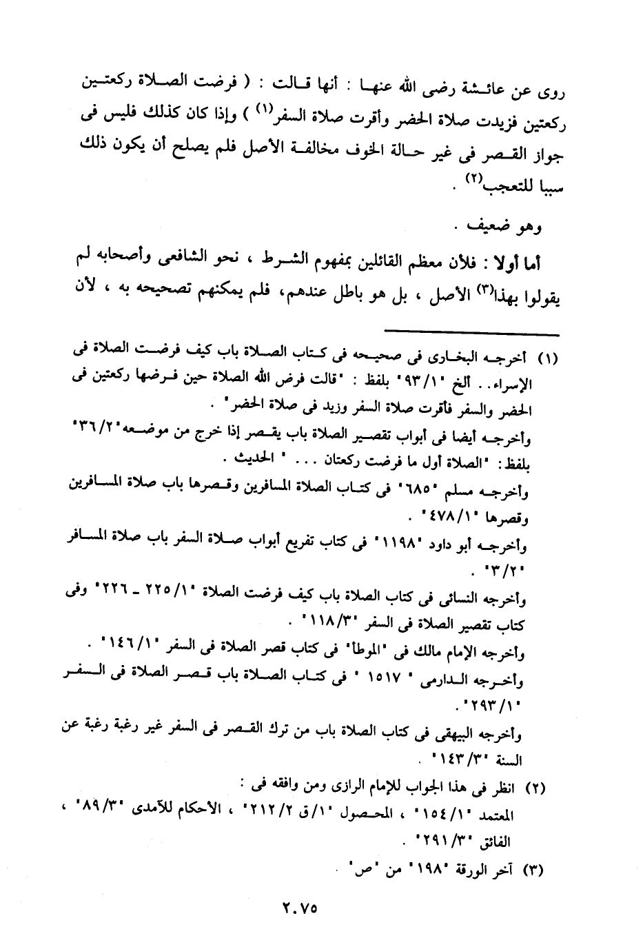 روي عن عائشة رضي الله عنها: أنها قالت: (فرضت الصلاة ركعتين ركعتين فزيدت صلاة الحضر وأقرت صلاة السفر) وإذا كان كذلك فليس في جواز القصر في غير حالة الخوف مخالفة الأصل فلم يصلح أن يكون ذلك سببًا للتعجب.