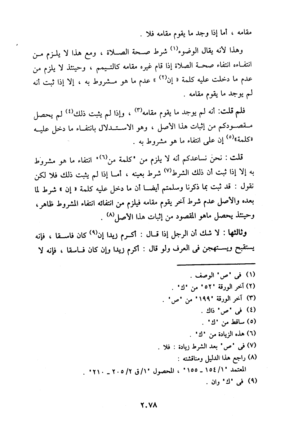 أيضًا أن ما دخل عليه كلمة "إن" شرط لما بعده والأصل عدم شرط آخر يقوم مقامه فيلزم من انتفائه انتفاء المشروط ظاهر، وحينئذ يحصل ما هو المقصود من إثبات هذا الأصل.