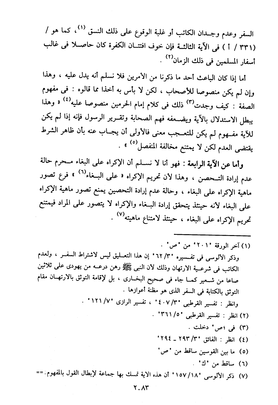 السفر وعدم وجدان الكاتب أو غلبة الوقوع على ذلك النسق، كما هو/ (331/أ) في الآية الثالثة فإن خوف افتتان الكفرة كان حاصلًا في غالب أسفار المسلمين في ذلك الزمان.