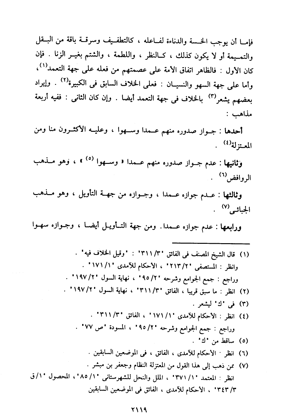 أحدها: جواز صدوره منهم عمدًا وسهوًا، وعليه الأكثرون منا ومن المعتزلة.