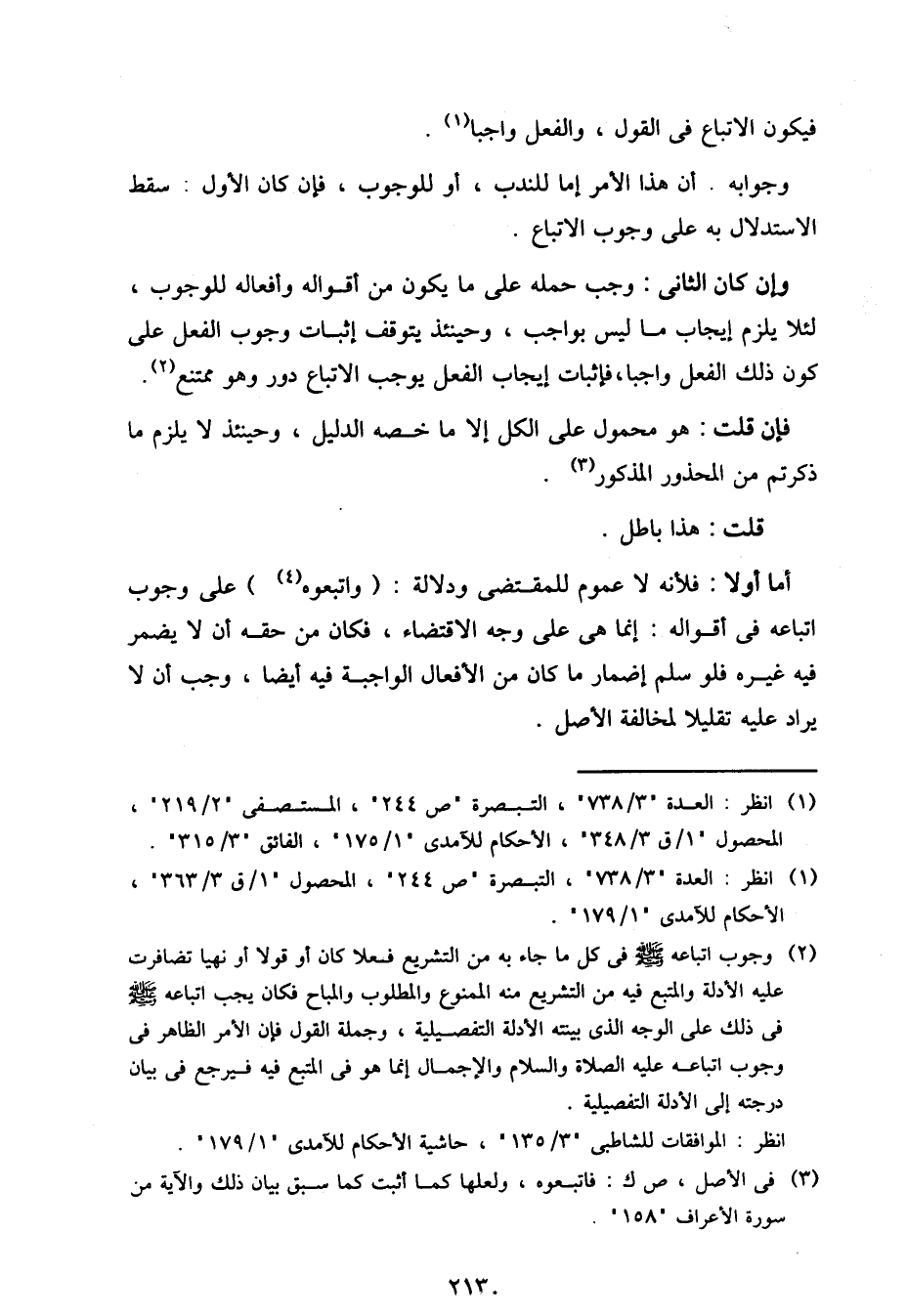 وجوابه. أن هذا الأمر إما للندب، أو للوجوب، فإن كان الأول: سقط الاستدلال به على وجوب الإتباع.