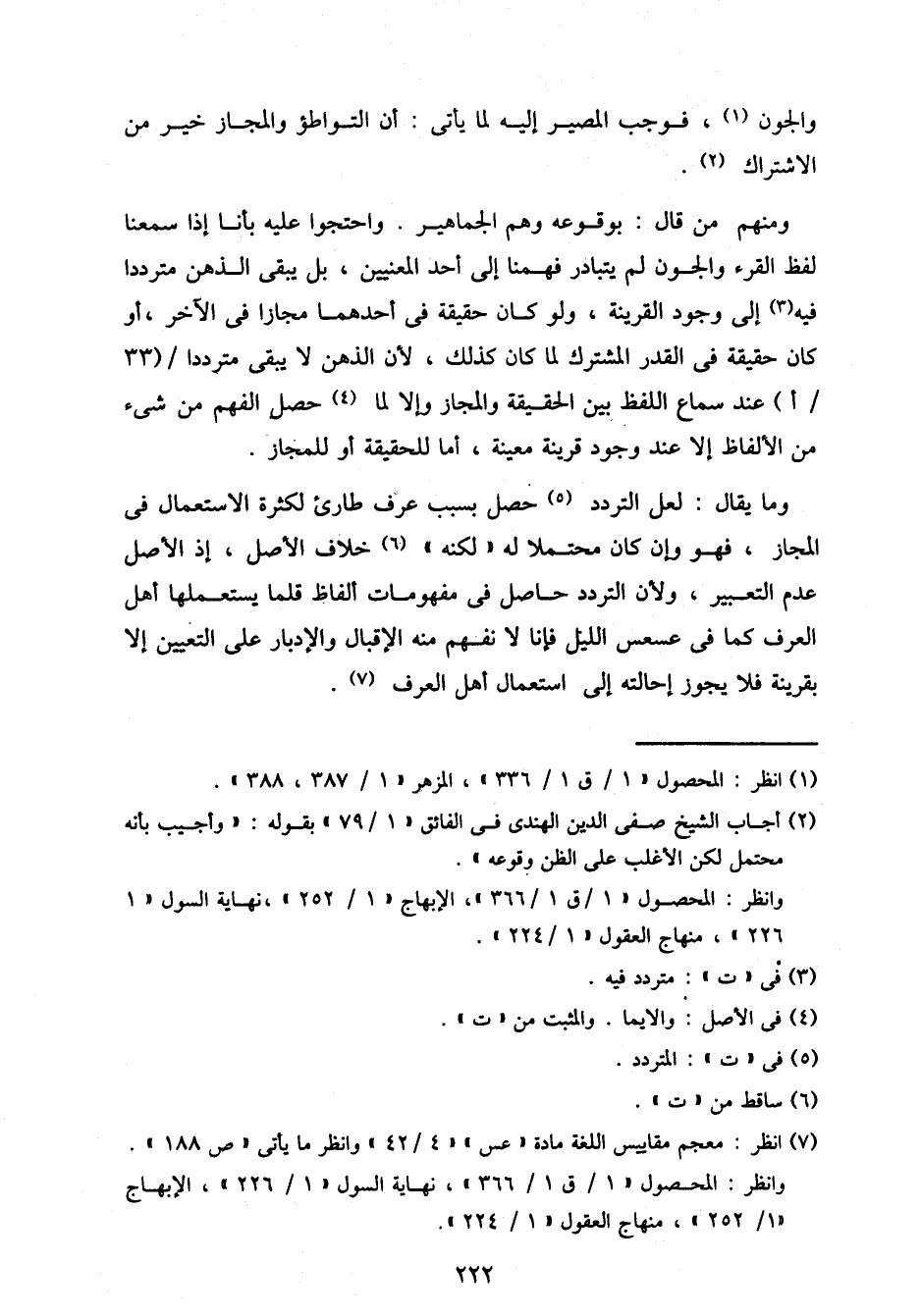 وما يقال: لعل التردد حصل بسبب عرف طارئ لكثرة الاستعمال في المجاز، فهو وإن كان محتملا له "لكنه" خلاف الأصل، إذ الأصل عدم التعبير، ولأن التردد حاصل في مفهومات ألفاظ قلما يستعملها أهل العرف كما في عسعس الليل فإنا لا نفهم منه الإقبال والإدبار على التعيين إلا بقرينة فلا يجوز إحالته إلى استعمال أهل العرف.