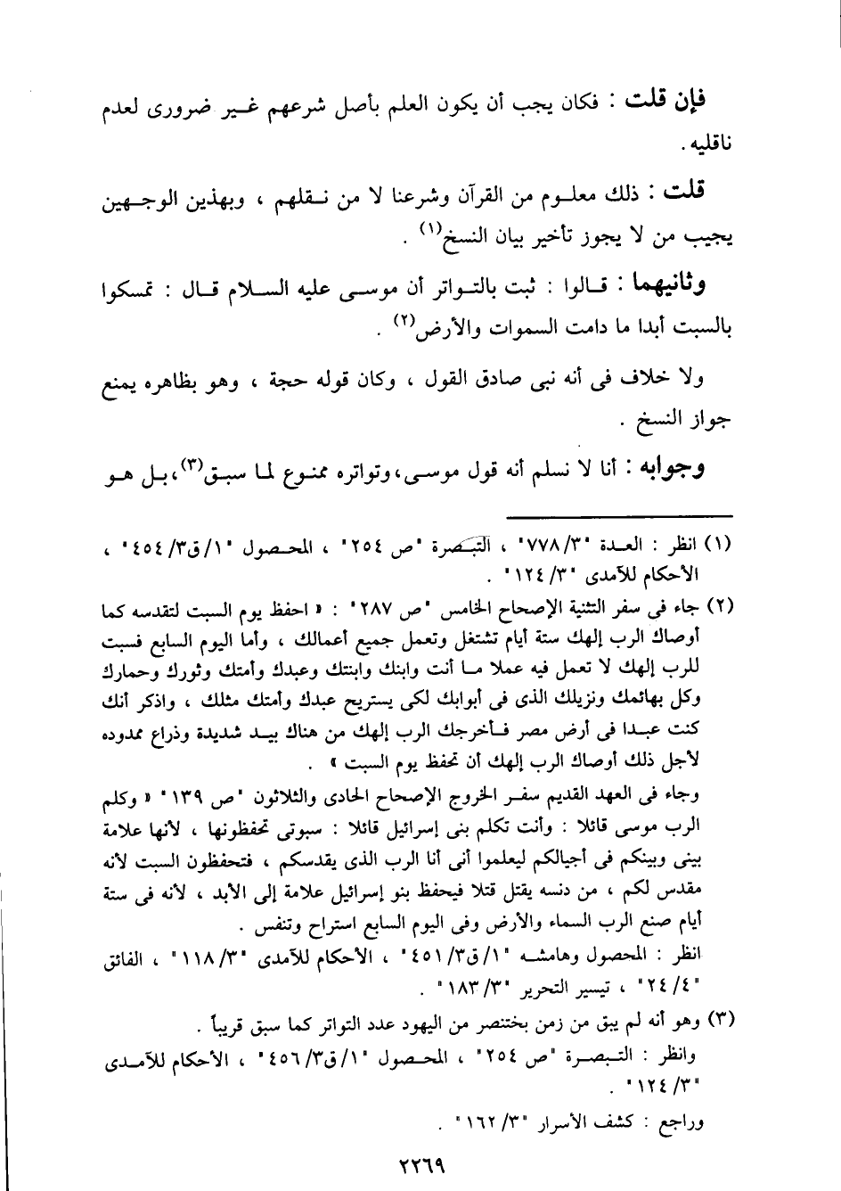 وثانيهما: قالوا: ثبت بالتواتر أن موسى عليه السلام قال: تمسكوا بالسبت أبدا ما دامت السموات والأرض.