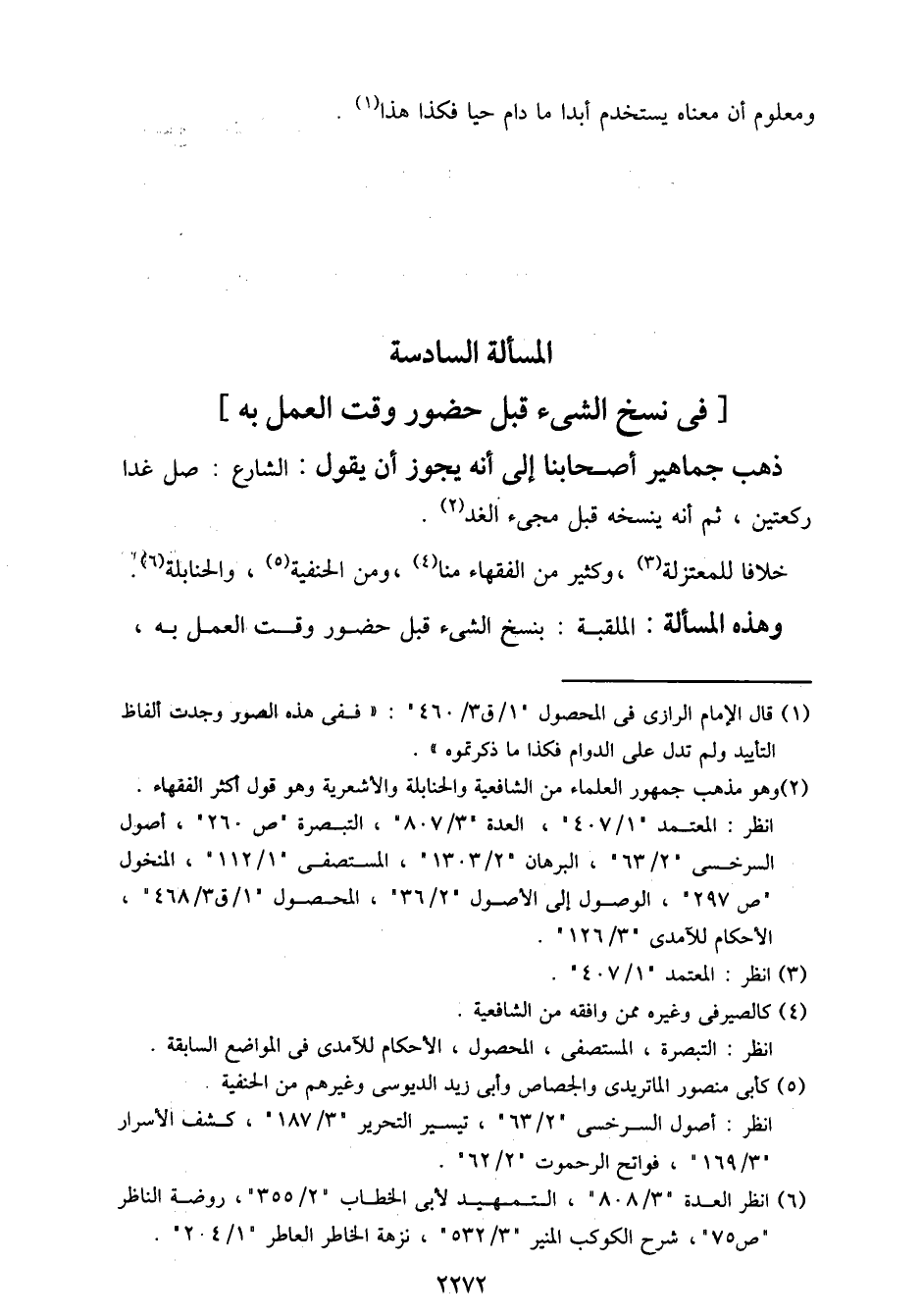 وهذه المسألة: الملقبة: بنسخ الشيء قبل حضور وقت العمل به،