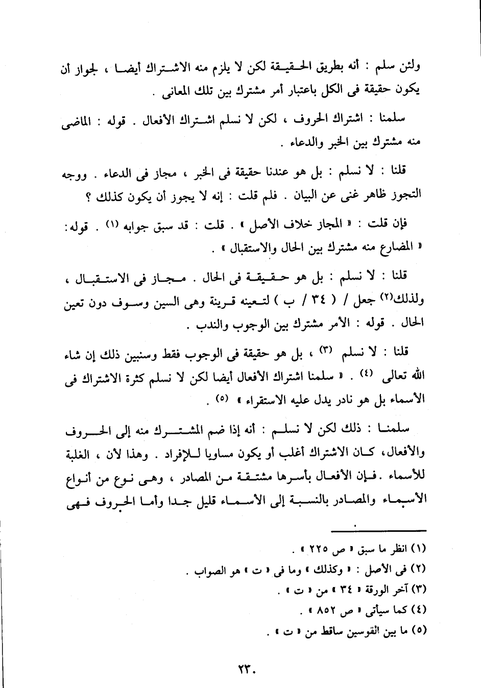 قلنا: لا نسلم: بل هو حقيقة في الحال. مجاز في الاستقبال، ولذلك جعل/ (34/ب) لتعينه قرينة وهي السين وسوف دون تعين الحال. قوله: الأمر مشترك بين الوجوب والندب.