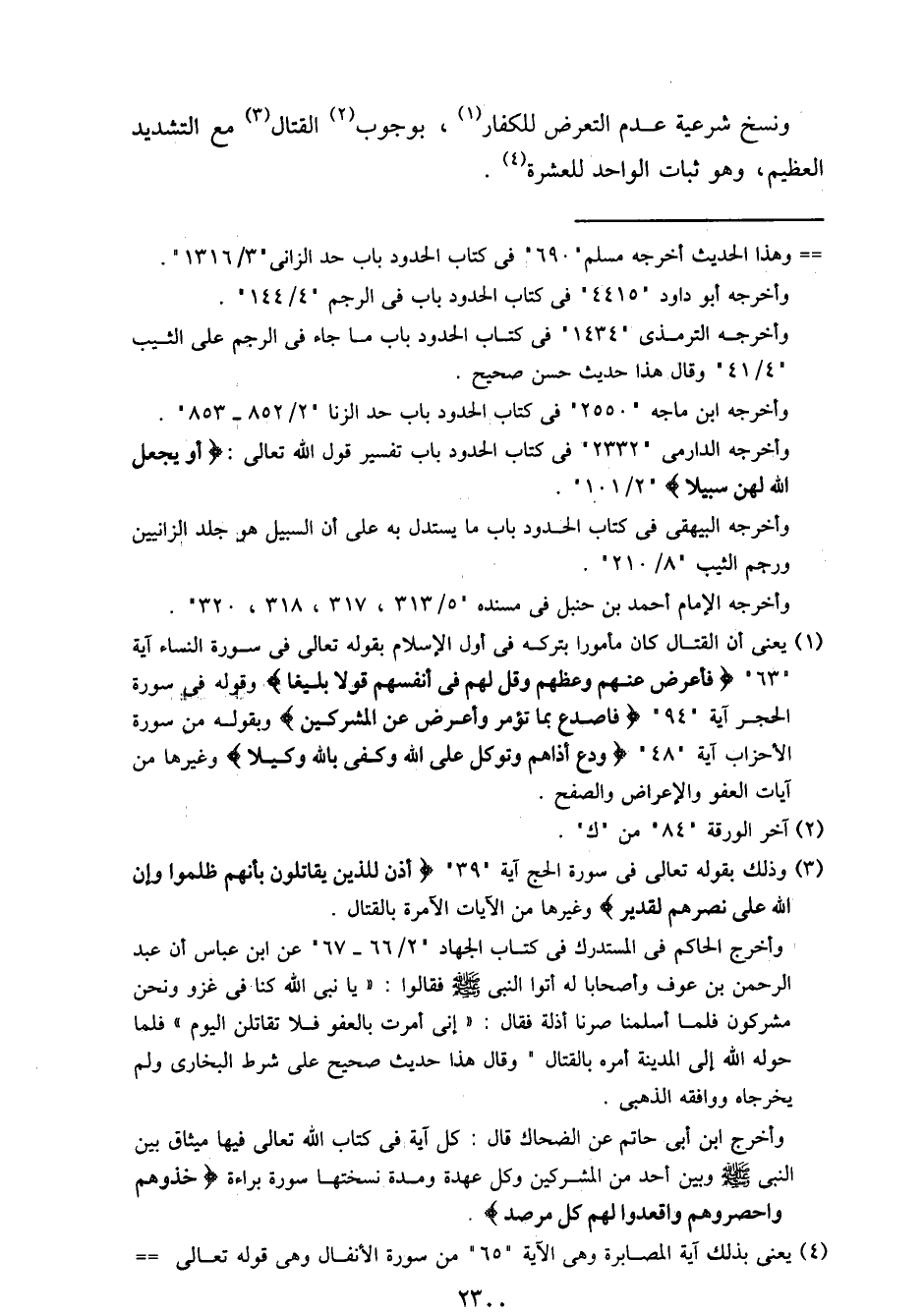 ونسخ شرعية عدم التعرض للكفار، بوجوب القتال، مع التشديد العظيم وهو ثبات الواحد للعشرة.