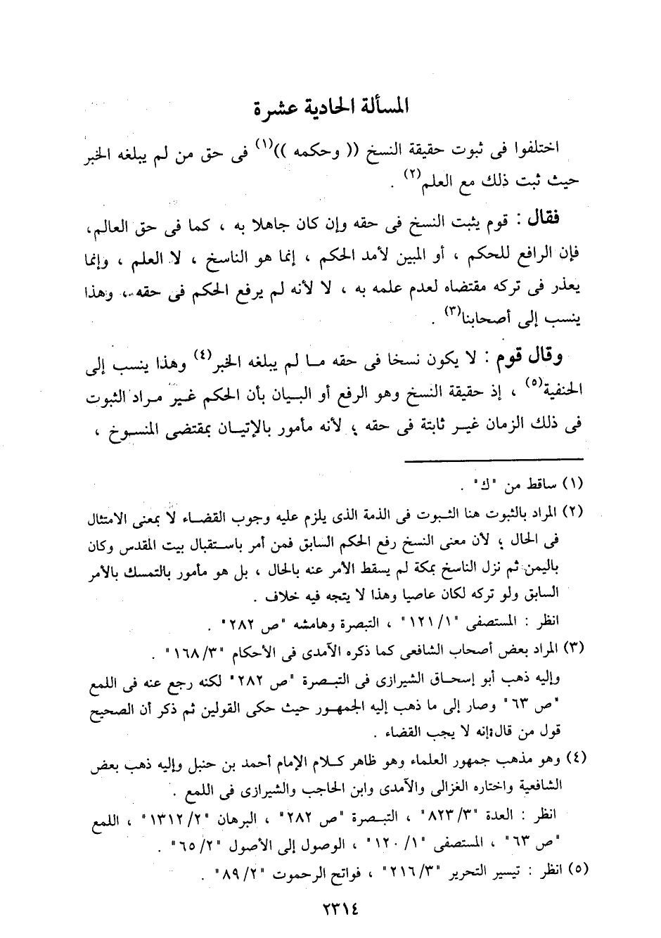 اختلفوا في ثبوت حقيقة النسخ "وحكمه" في حق من لم يبلغه الخبر حيث ثبت ذلك مع العلم.