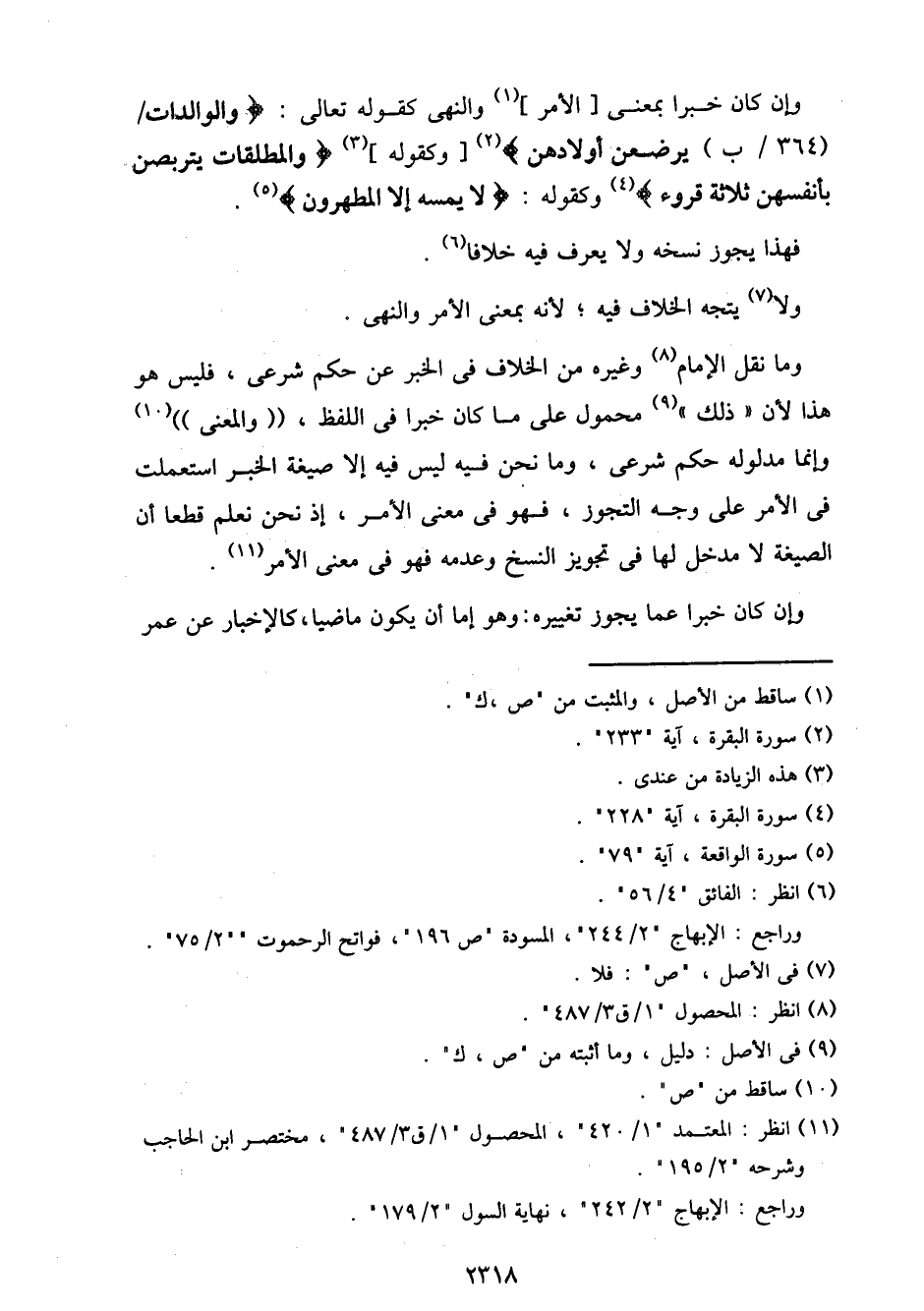 وما نقل الإمام وغيره من الخلاف في الخبر عن حكم شرعي، فليس هو هذا لأن "ذلك" محمول على ما كان خبرًا في اللفظ، "والمعنى" وإنما مدلوله حكم شرعي، وما نحن فيه ليس فيه إلا صيغة الخبر استعملت في الأمر على وجه التجوز، فهو في معنى الأمر، إذ نحن نعلم قطعًا أن الصيغة لا مدخل لها في تجويز النسخ وعدمه فهو في معنى الأمر.