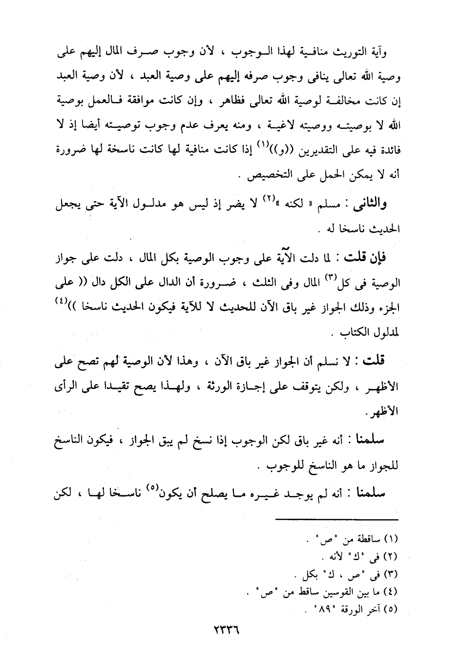 فإن قلت: لما دلت الآية على وجوب الوصية بكل المال، دلت على جواز الوصية في كل المال وفي الثلث، ضرورة أن الدال على الكل دال "على الجزء وذلك الجواز غير باق الآن للحديث لا للآية فيكون الحديث ناسخًا" لمدلول الكتاب.