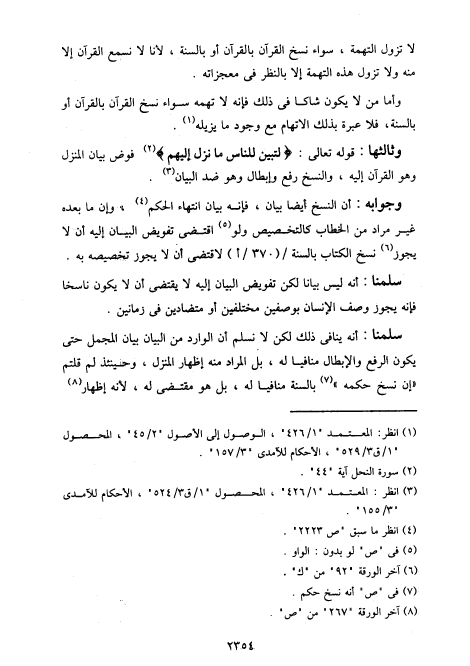 لا تزول التهمة، سواء نسخ القرآن بالقرآن أو بالسنة، لأنا لا نسمع القرآن إلا منه ولا تزول هذه التهمة إلا بالنظر في معجزاته.