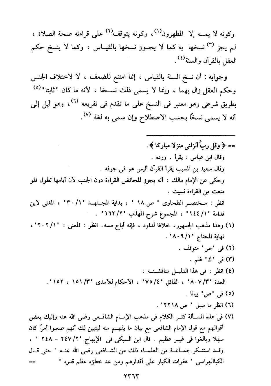 وكونه لا يمسه إلا المطهرون، وكونه يتوقف على قراءته صحة الصلاة، لم يجز نسخها به كما لا يجوز نسخها بالقياس، وكما لا ينسخ حكم العقل بالقرآن والسنة.