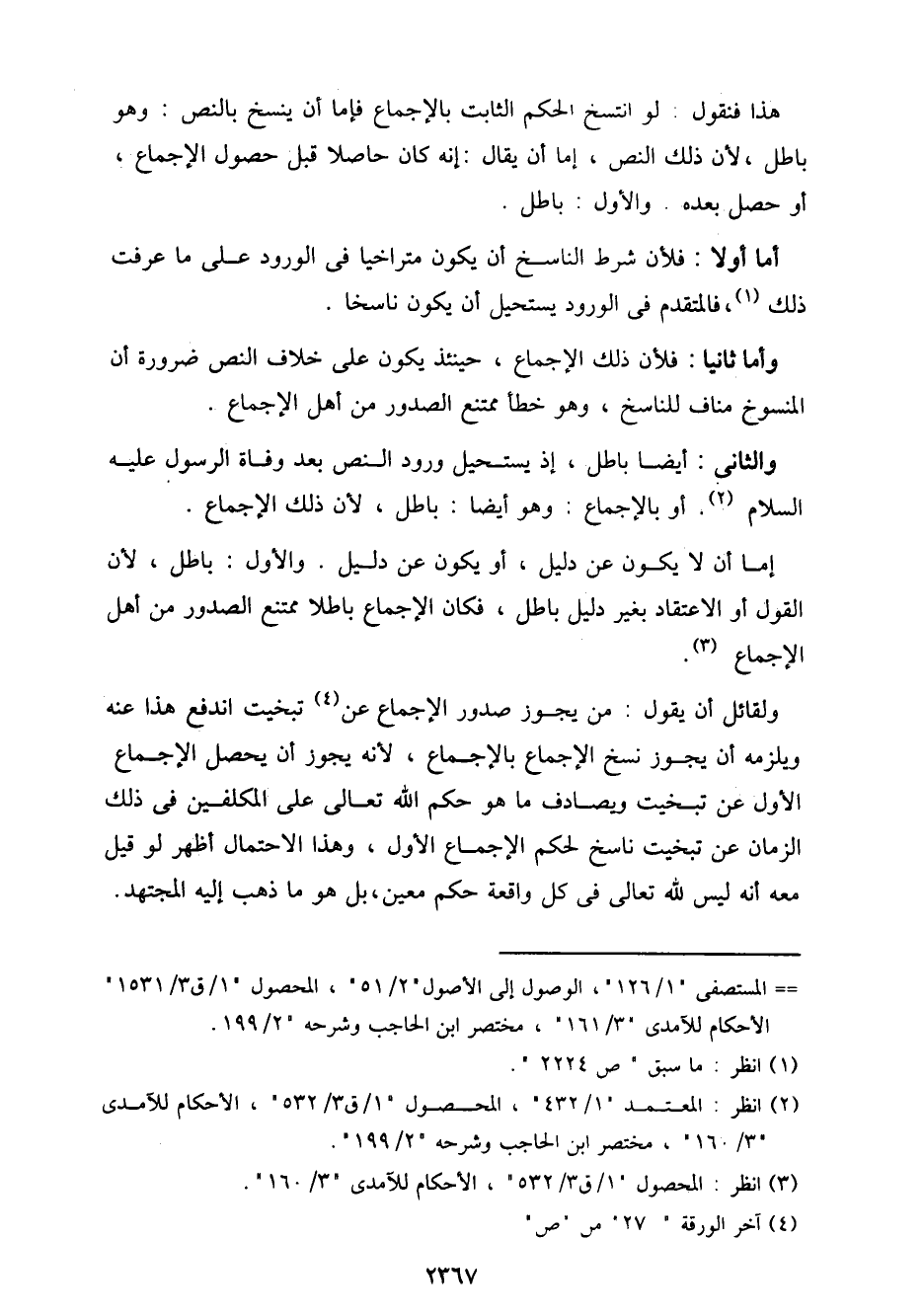 وأما ثانيًا: فلأن ذلك الإجماع، حينئذ يكون على خلاف النص ضرورة أن المنسوخ مناف للناسخ، وهو خطأ ممتنع الصدور من أهل الإجماع.