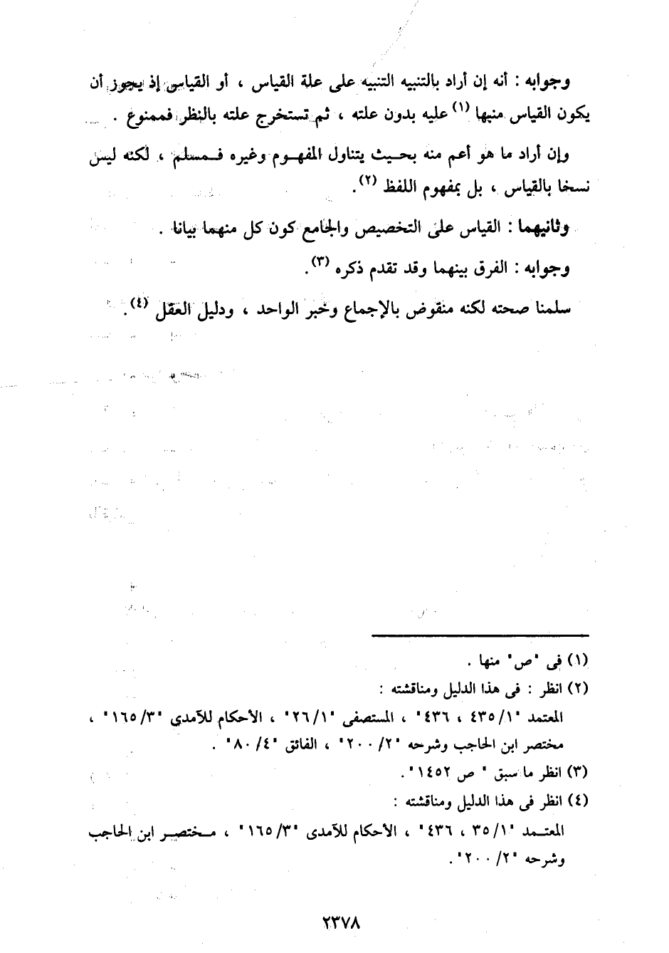 وجوابه: أنه إن أراد بالتنبيه التنبيه على علة القياس، أو القياس إذ يجوز أن يكون القياس منبهًا عليه بدون علته، ثم تستخرج علته بالنظر فممنوع.