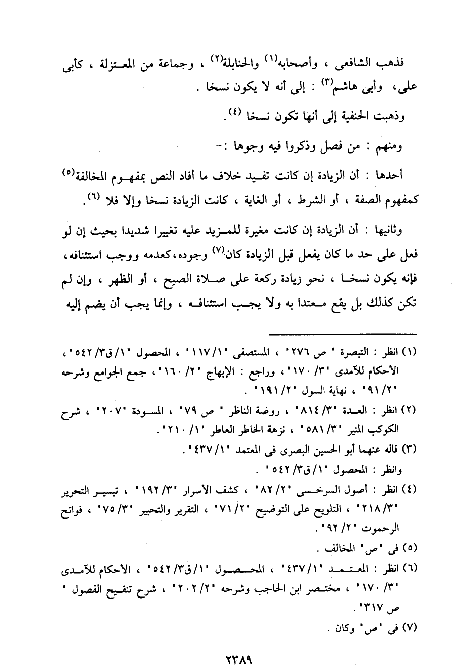 وثانيها: أن الزيادة إن كانت مغيرة للمزيد عليه تغييرًا شديدًا بحيث إن لو فعل على حد ما كان يفعل قبل الزيادة كان وجوده، كعدمه ووجب استئنافه، فإنه يكون نسخًا، نحو زيادة ركعة على صلاة الصبح، أو الظهر، وإن لم تكن كذلك بل يقع معتدًا به ولا يجب استئنافه، وإنما يجب أن يضم إليه
