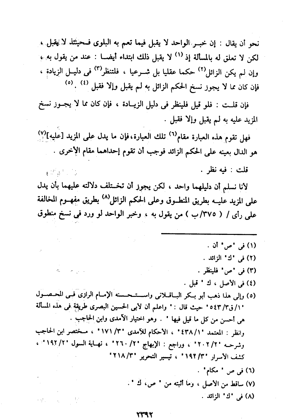 فإن قلت: فلو قيل فلينظر في دليل الزيادة، فإن كان مما لا يجوز نسخ المزيد عليه به لم يقبل وإلا فقبل.