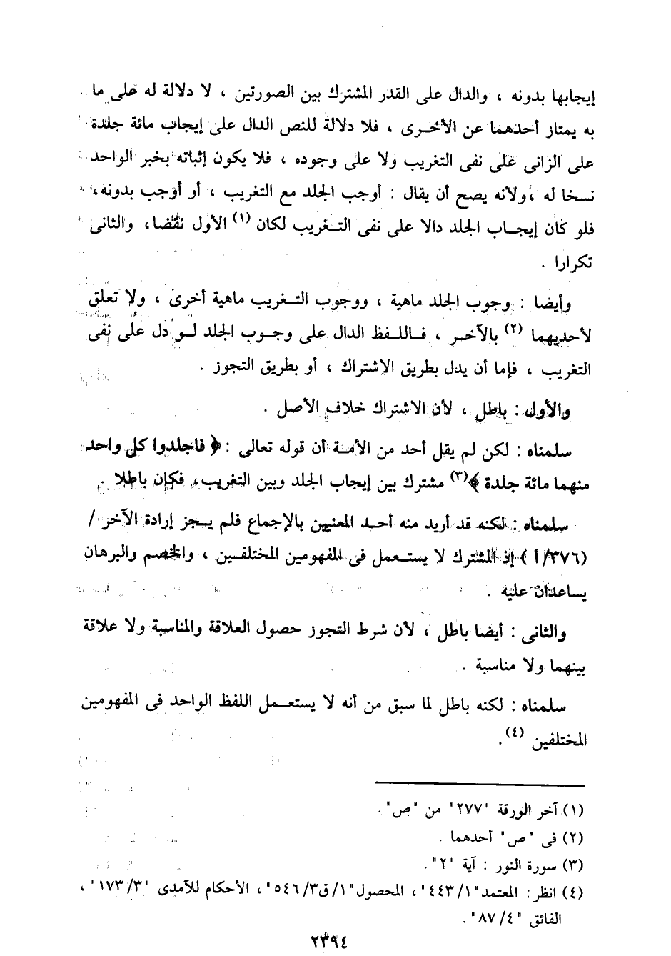 سلمناه: لكنه قد أريد منه أحد المعنيين بالإجماع فلم يجز إرادة الآخر/ (376/ أ) إذ المشترك لا يستعمل في المفهومين المختلفين، والخصم والبرهان يساعدان عليه.