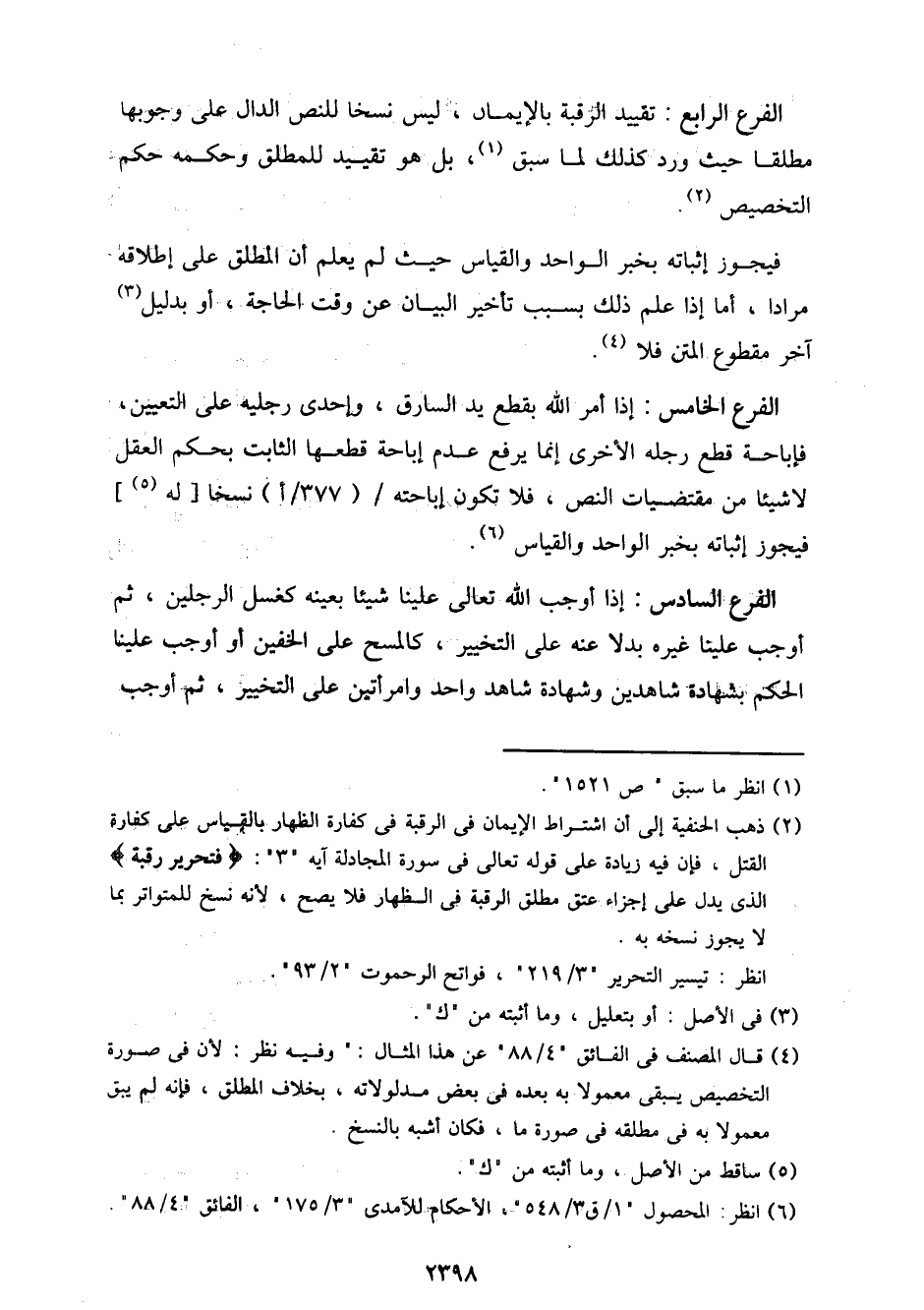 الفرع الرابع: تقييد الرقبة بالإيمان، ليس نسخًا للنص الدال على وجوبها مطلقًا حيث ورد كذلك لما سبق، بل هو تقييد للمطلق وحكمه حكم التخصيص.