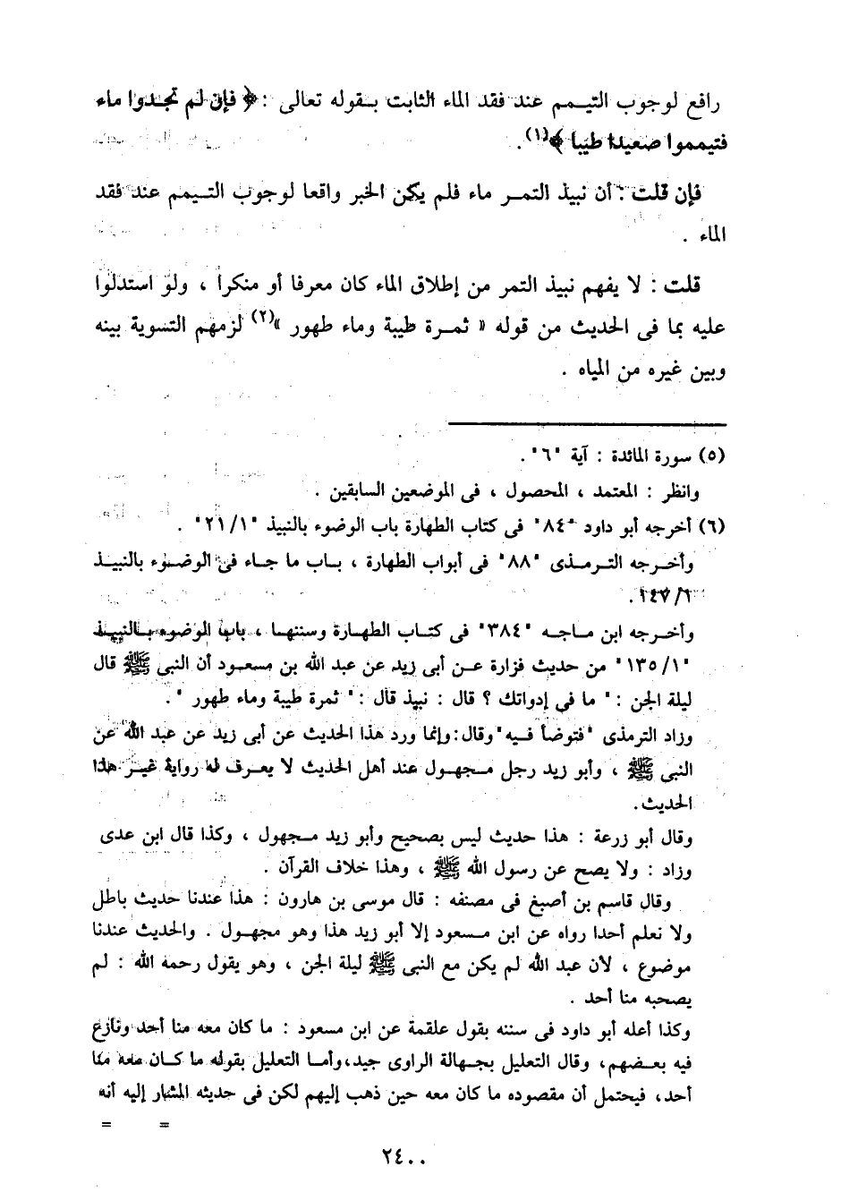 قلت: لا يفهم نبيذ التمر من إطلاق الماء كان معرفًا أو منكرًا، ولو استدلوا عليه بما في الحديث من قوله "ثمرة طيبة وماء طهور" لزمهم التسوية بينه وبين غيره من المياه.