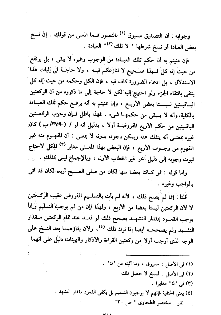 قلنا: إنما لم يصح ذلك، لأنه لم يأت بالتسليم المفروض عقيب الركعتين لا لأن الركعتين ليستا بعضًا من الأربع، ولهذا فإن من لم يوجب التسليم وإنما يوجب القعود بمقدار التشهد يصحح ذلك لو قعد عند تمام الركعتين مقدار التشهد ولم يصححه أيضًا إذا ترك ذلك، ولأن بقاؤهما بعد النسخ على الوجه الذي أوجب أولاً من ركعتين القراءة والأذكار والهيئات دليل على أنهما
